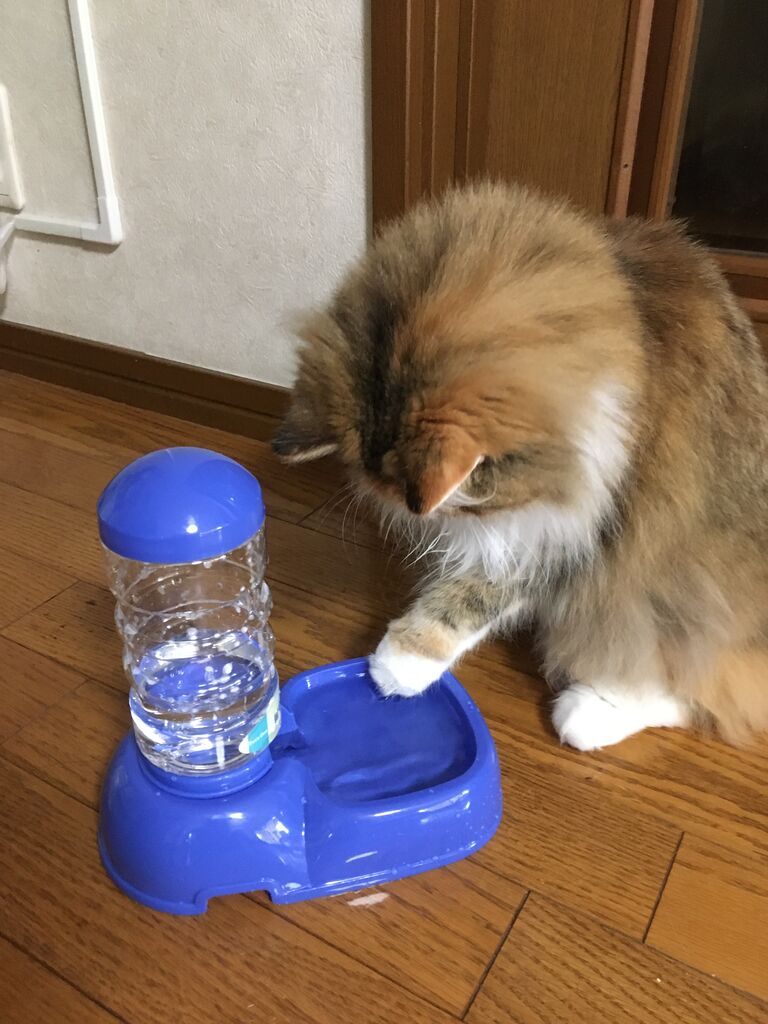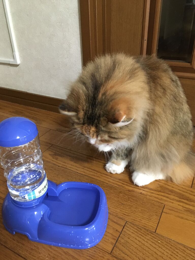 以前書いた電動の自動給水器、やっぱりなぎは飲むことができない。コンセントを抜くと近寄ってピチャピチャするから、水が出るのが怖いんだね。