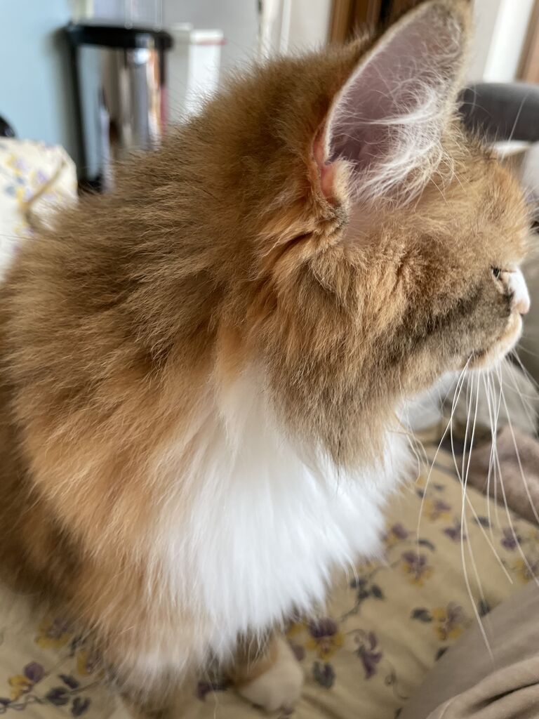 お尻と耳のあたりの、私が1番好きな優しい薄茶色が多くなって、一段と美猫になってきたよね。飼い主はひとりで満足。
