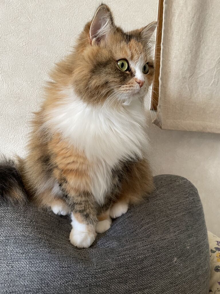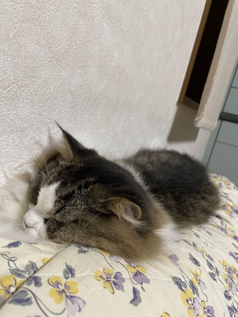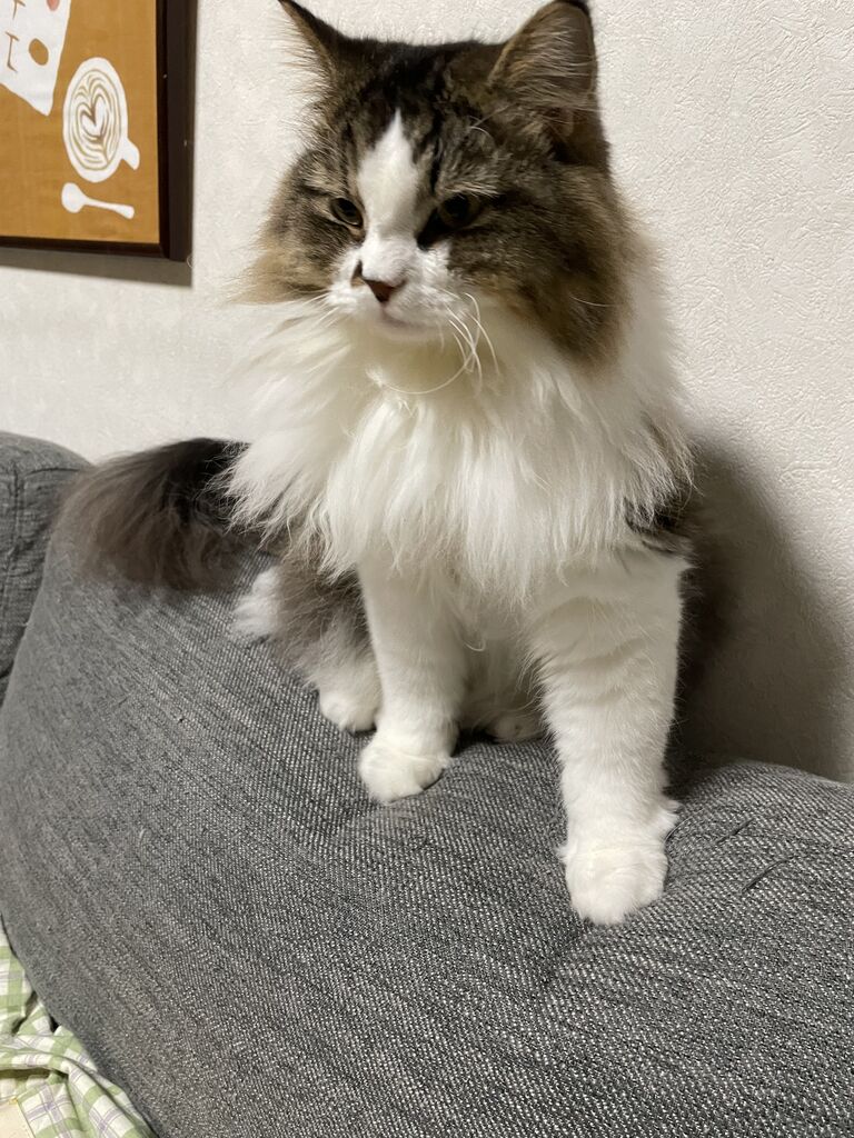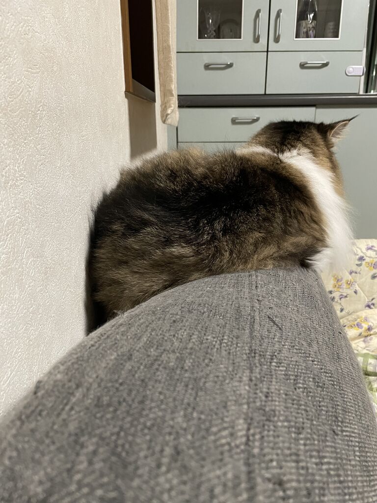 最近のテンちゃんは、ソファの背もたれの上がお昼寝の定位置。