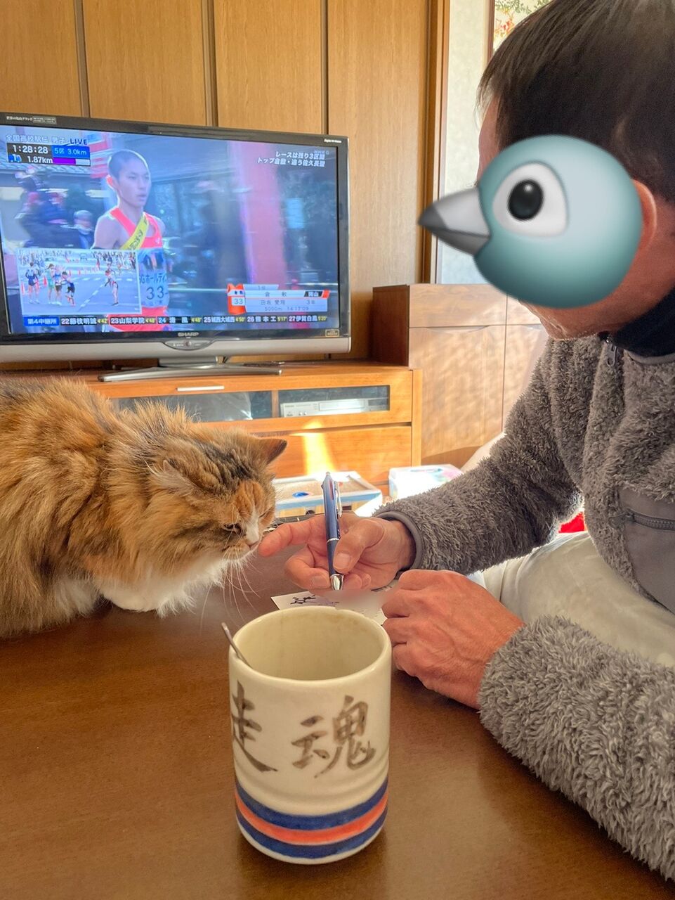 お父さん飼い主さん、駅伝見てないで早く年賀状書かなくちゃ