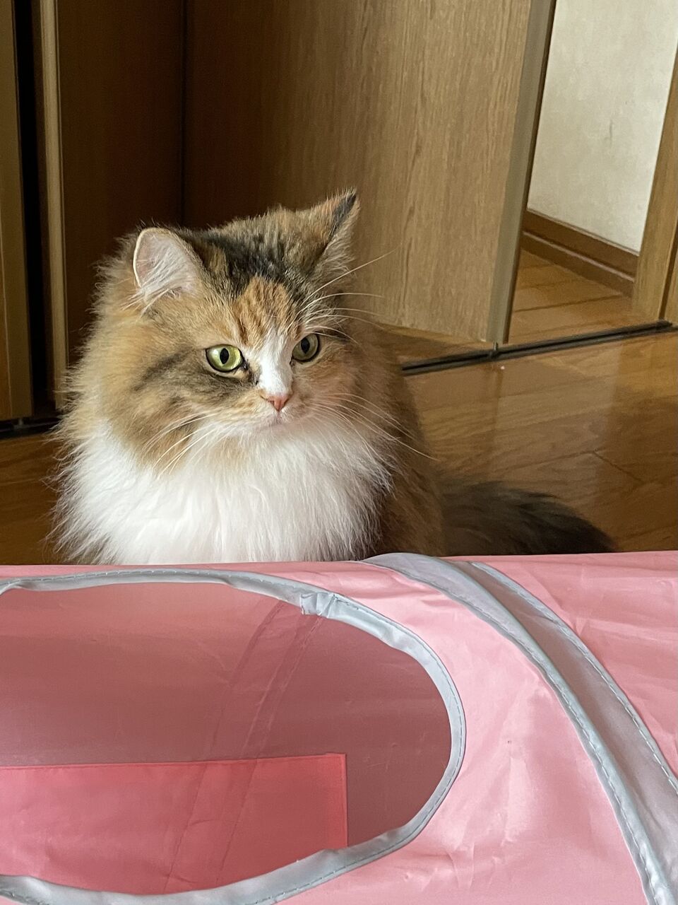 シャンプーの日が近づいていることに気づいていない犬顔の猫