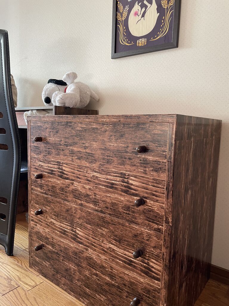 100均でリメイクシートを買ってきてタンスに貼る。
