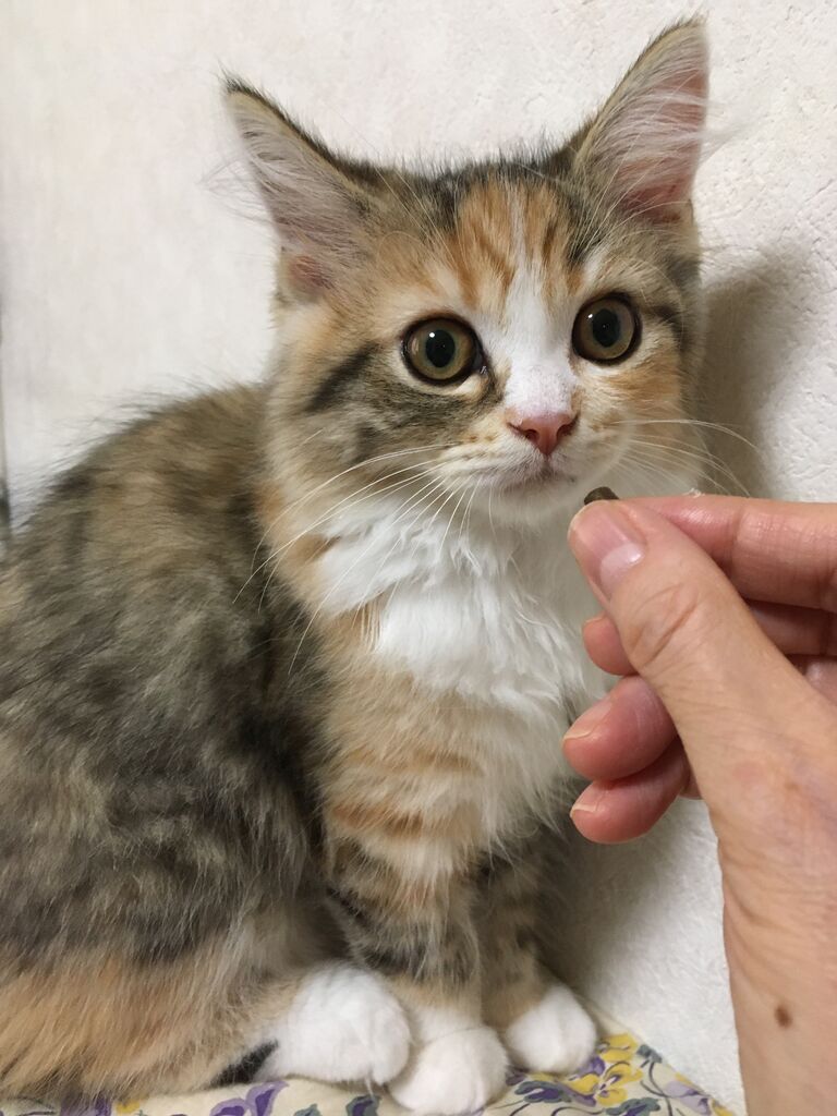 今月末ノミの薬をもらいに病院は行くので「総合食を食べ、体重が増えていれば、少食でもいいですよ!」と先生に言ってもらえれば、少し安心できるんだけどな。