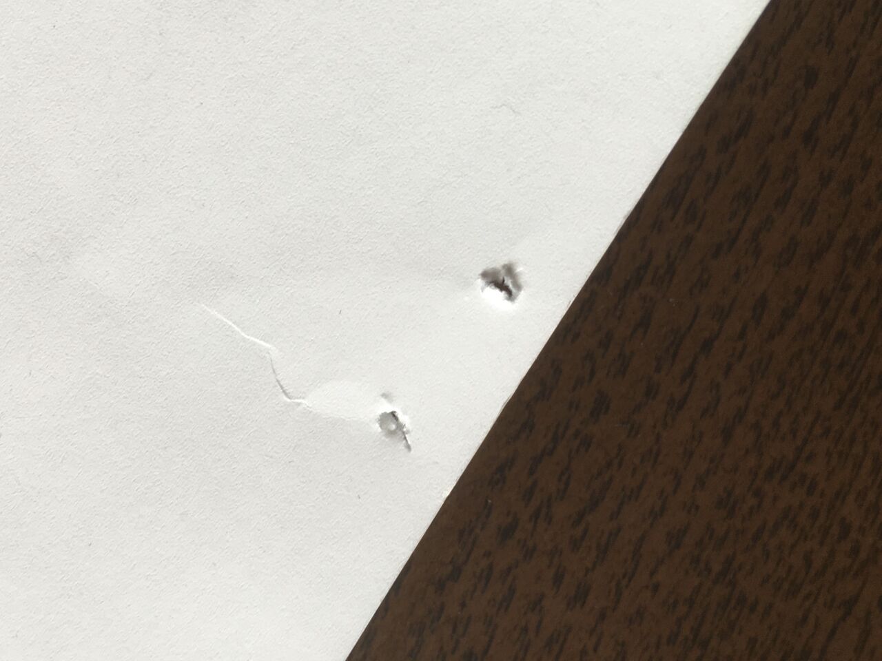 パンチで開けたようにきれいにがっつり穴を開けられたカレンダー