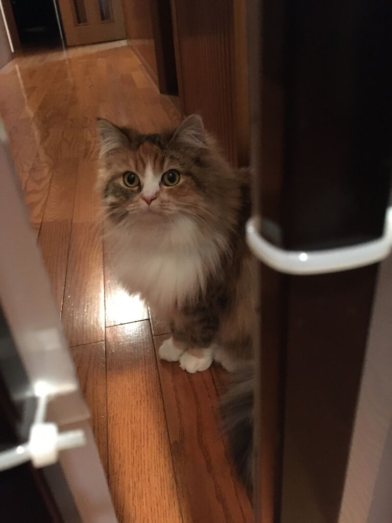 引き戸はないのでわからないけれど、ほんの少しだけ開いたドアも器用に手を入れて入ってくる。