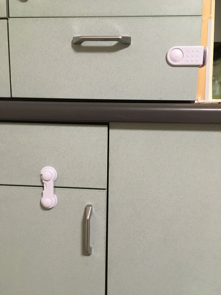 そこでホームセンターで「ベビーキャビネットロック」というものを買ってきた。