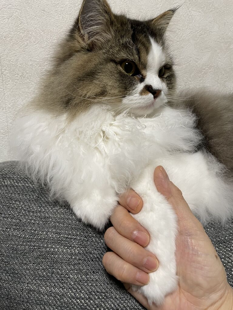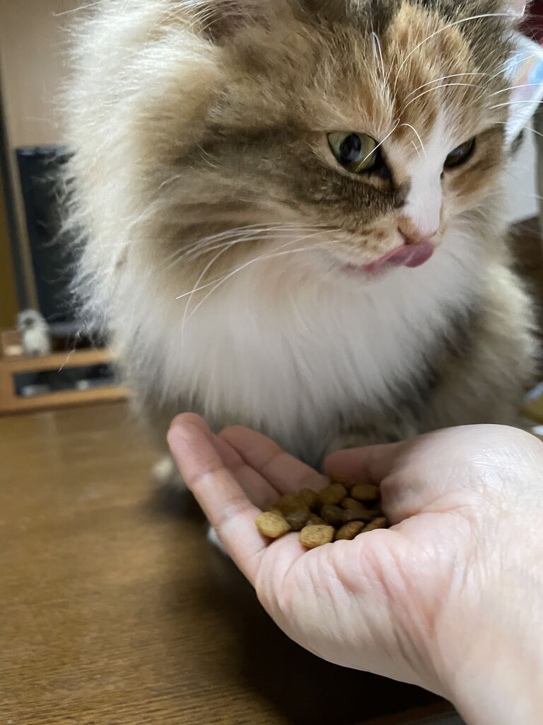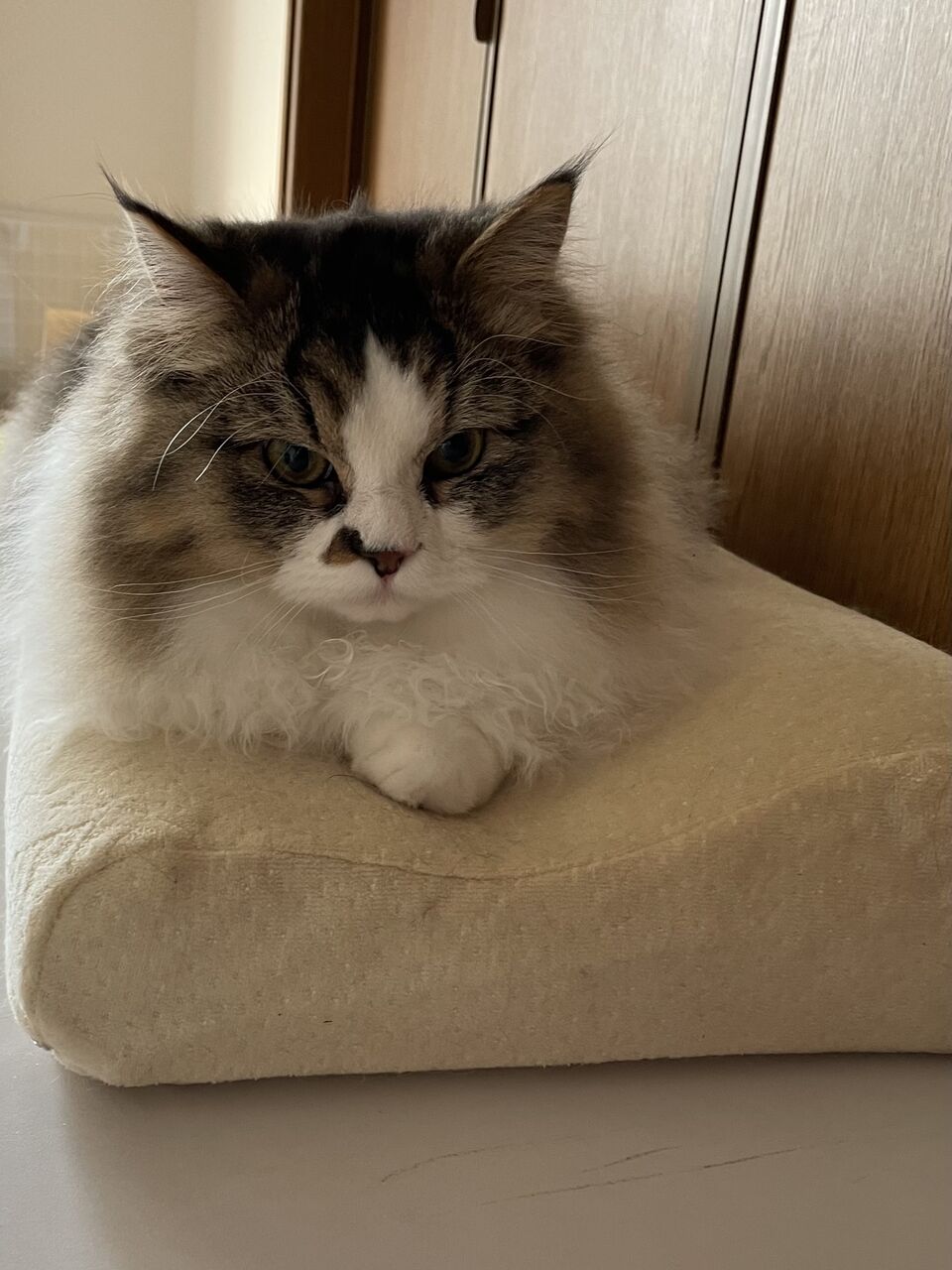 なぎはブラッシングが好きじゃないから、寝ているところへ行ってサッとブラッシンググローブで体を撫でる。なぎがはっきり目を覚まさないうちに「失礼しましたぁ!」と退散。