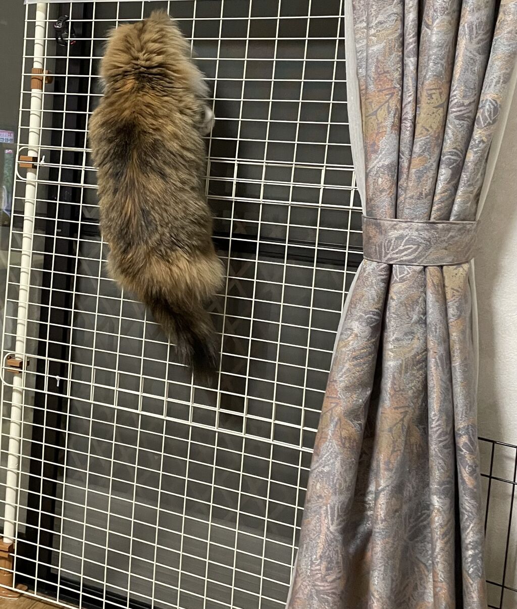 予想通り爪を研ぐので、所々糸が浮き上がっているのはドンマイの範囲。