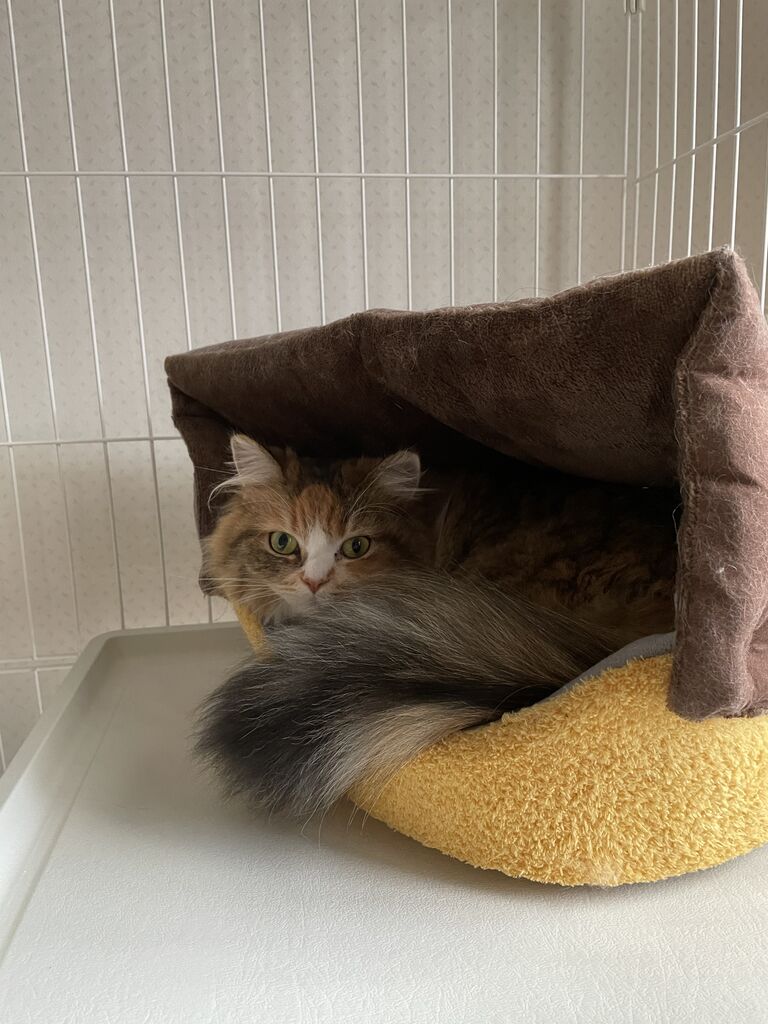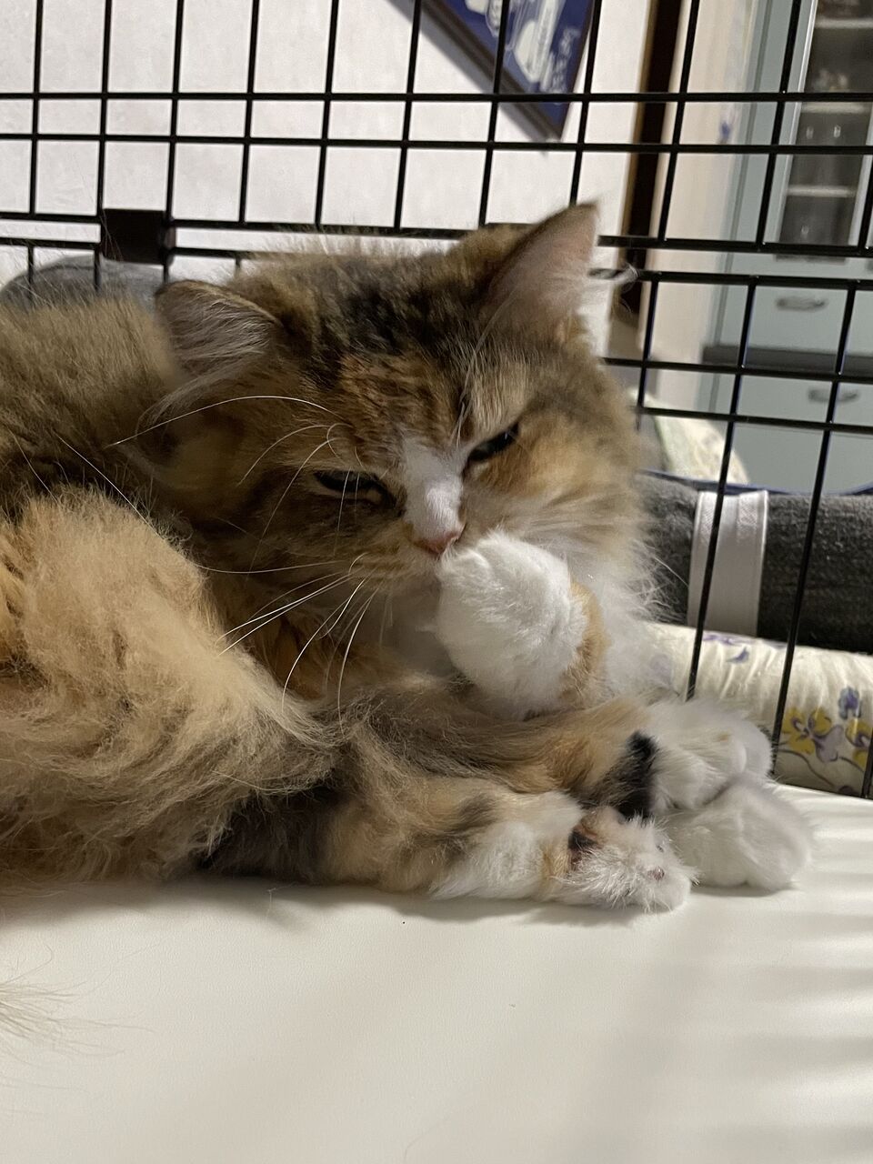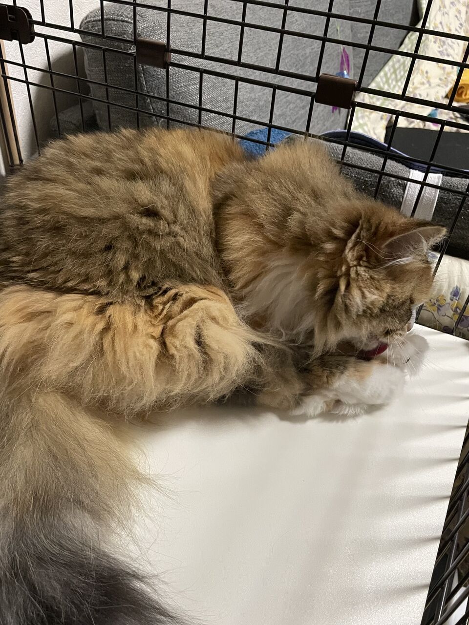テンちゃんのケージのベッドでくつろぐなぎ
