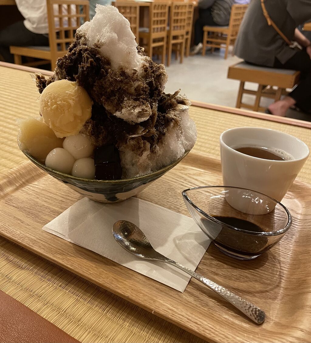 その前にちょっとだけ遠回りして、先日行った西尾で「ほうじ茶かき氷」を食べる。エヘヘッ