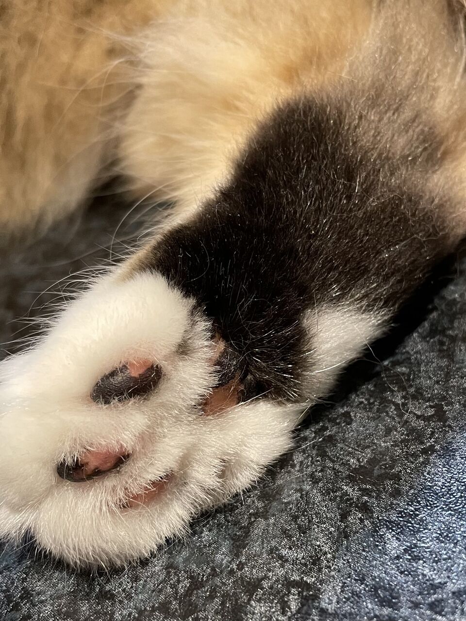 電動歯ブラシをしながら、なぎの肉球周りのボサボサの毛を見ていたとき。