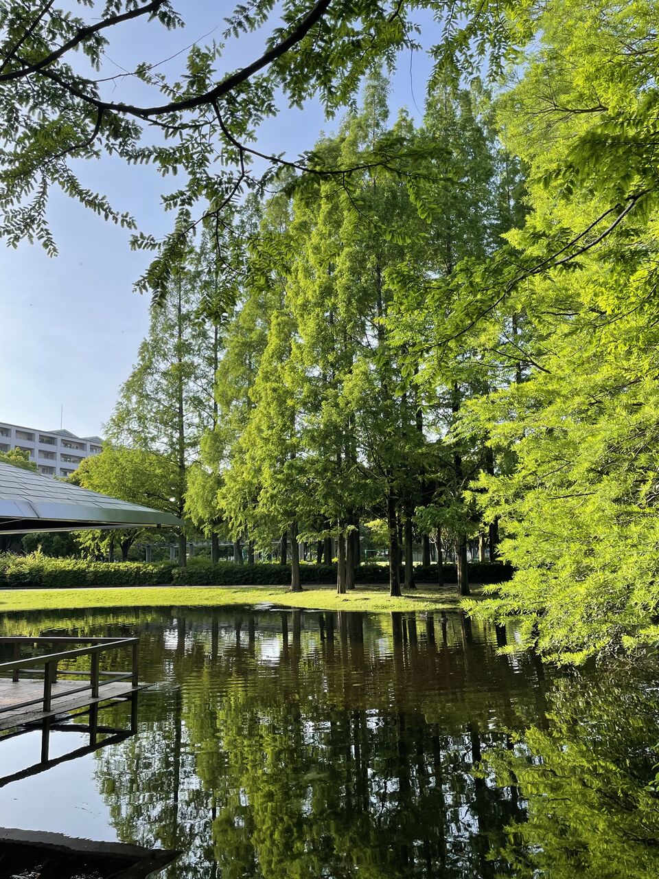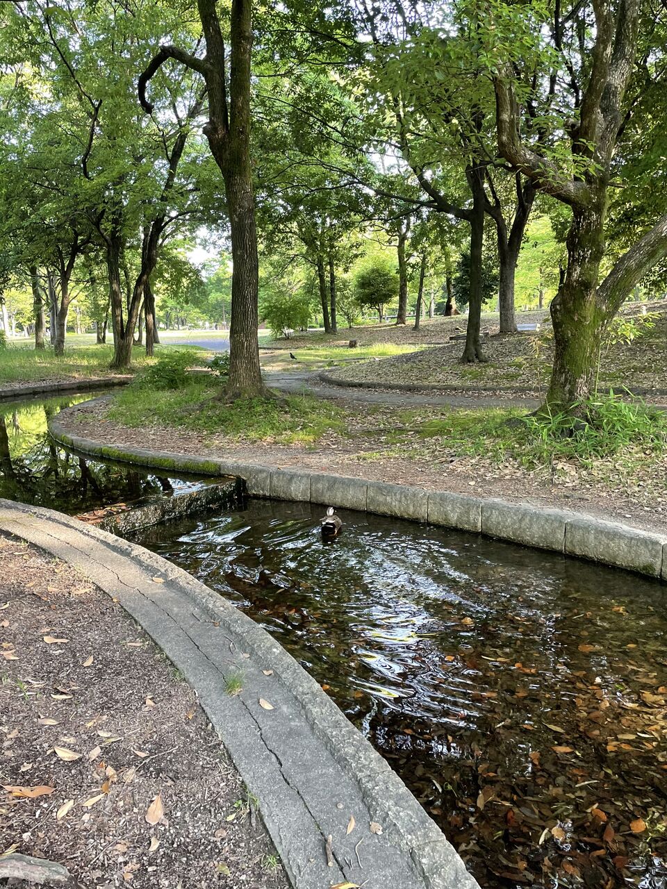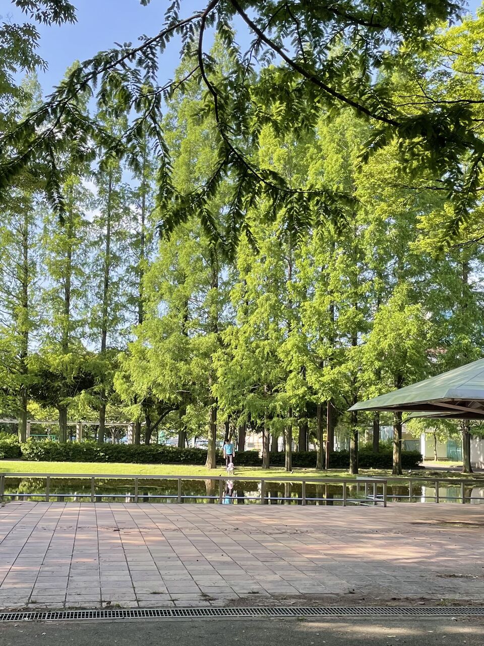 今回は家から15分かからない公園へ。ここも緑が多くてgood!さっそく木陰に設置。