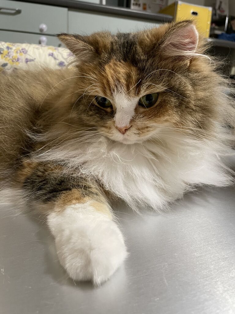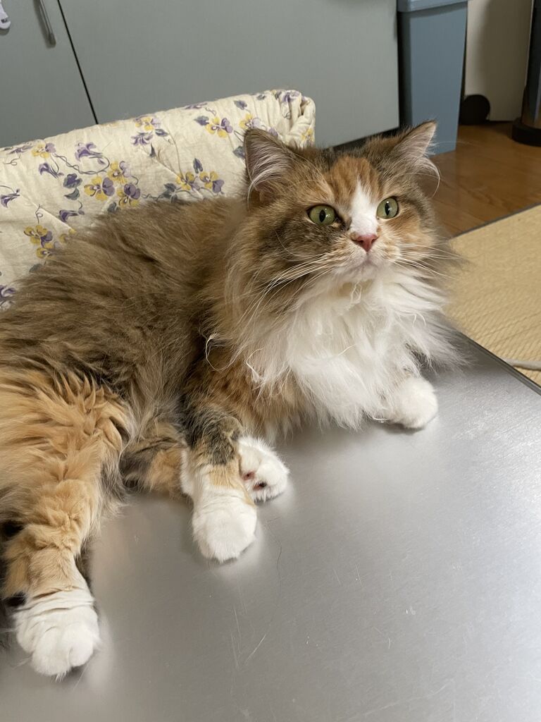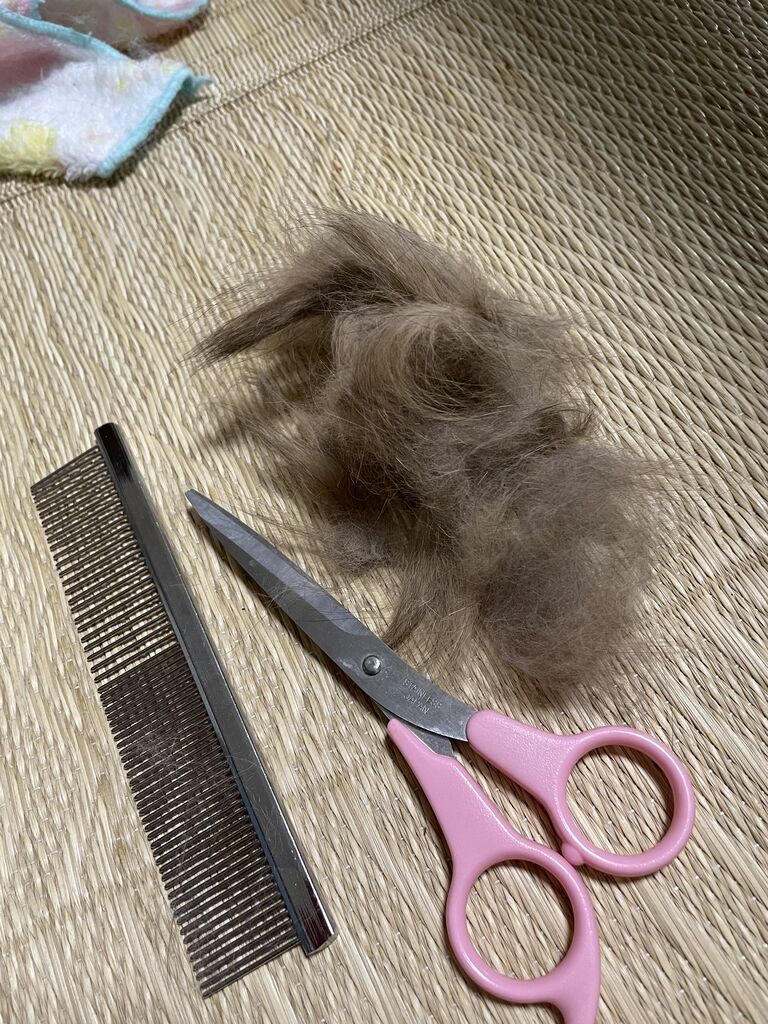 テンちゃんとは違う毛質のなぎ。ほぐしても一度固まったところは、きれいにならないようだ。