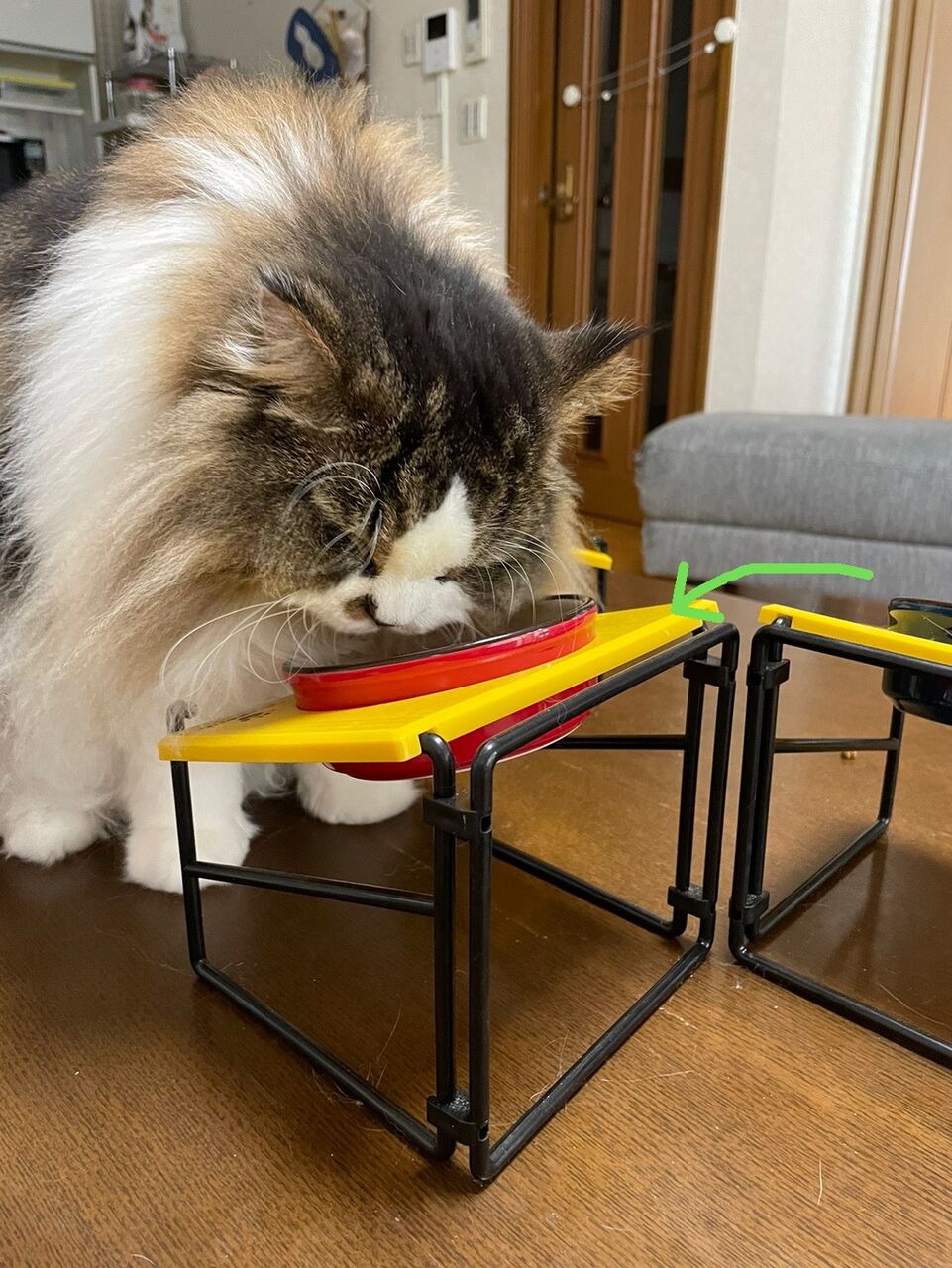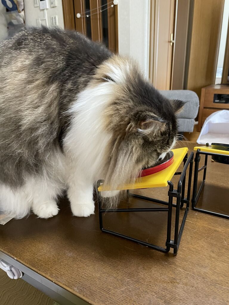 そんなとき、お皿をテンちゃんのほうに向けてあげると食べ出す。