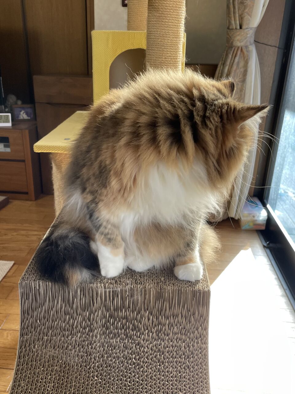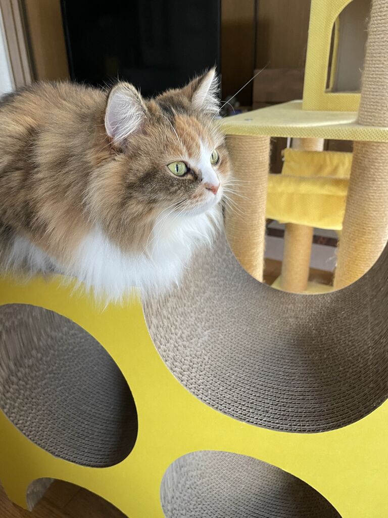 昼寝姿も30パーセント。あと、外を見てるときとか鳴き声とか爪とぎしているところとかが35パーセント。