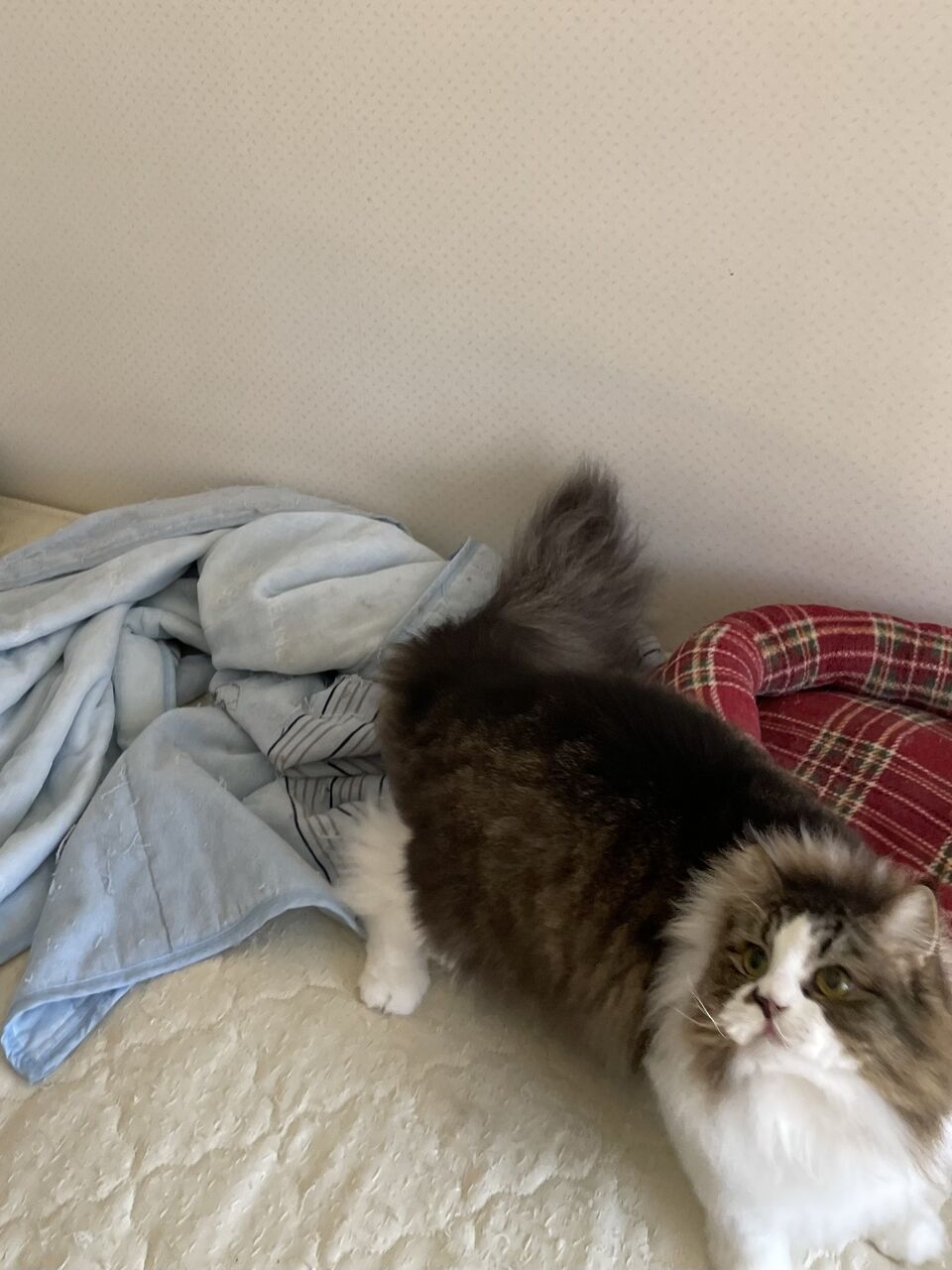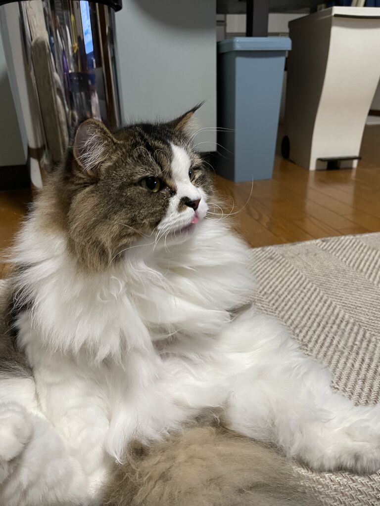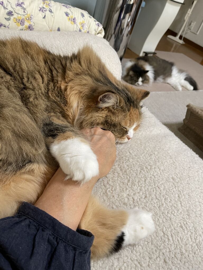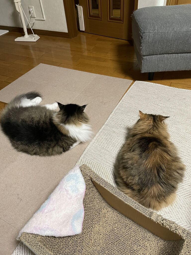 大きい猫種なのに小さくていいのかというご意見もあるだろうけれど、ラガマフィンを選ぶとき唯一悩んだのが大きさ。飼い始め当時体力がまったくなかったからなぁ。それにこれから高齢者になっていく私たち、チビマフィンは大歓迎。