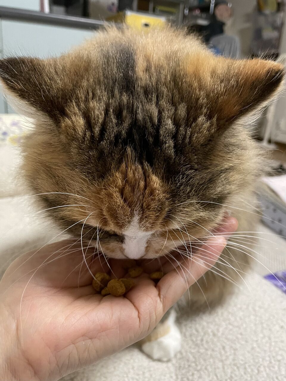 猫がごはんを食べる姿を見ていると、悩みの30パーセントは忘れられる。