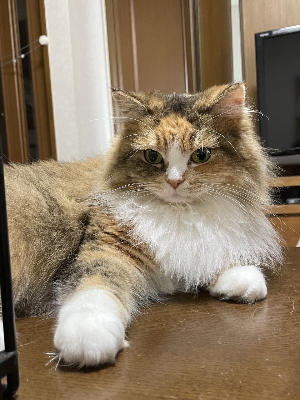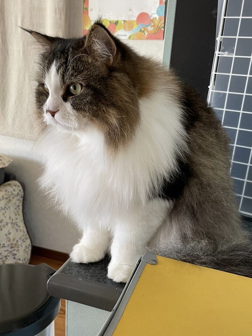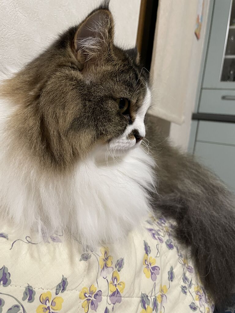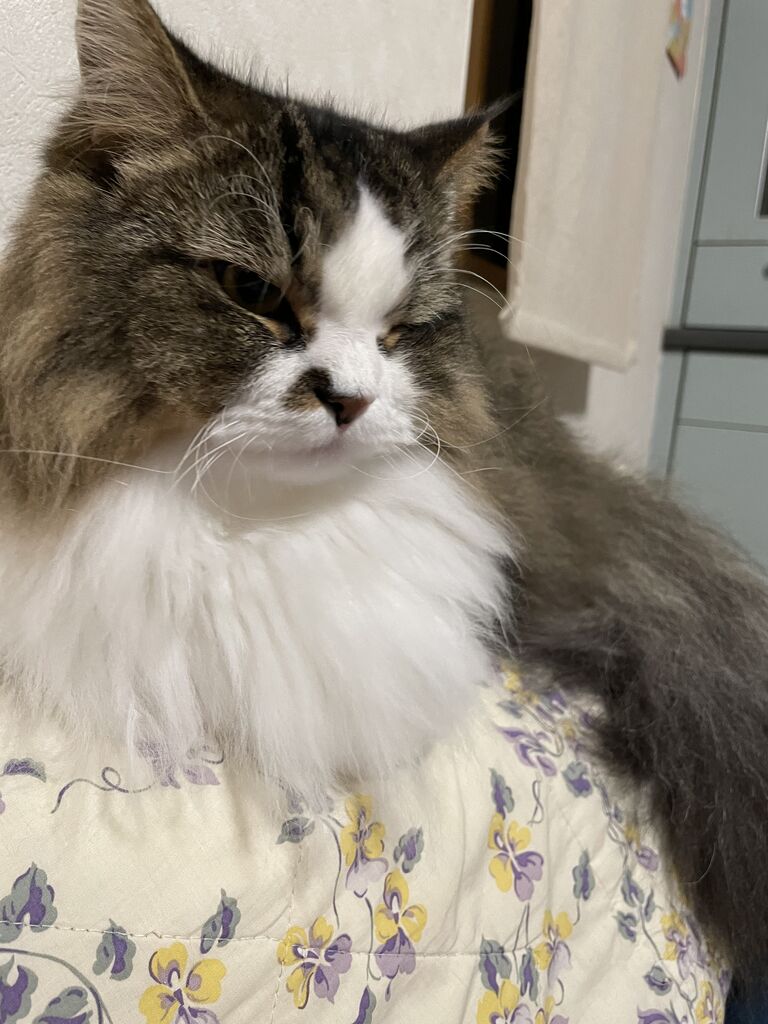 着膨れた背中 猫の毛あちこちに