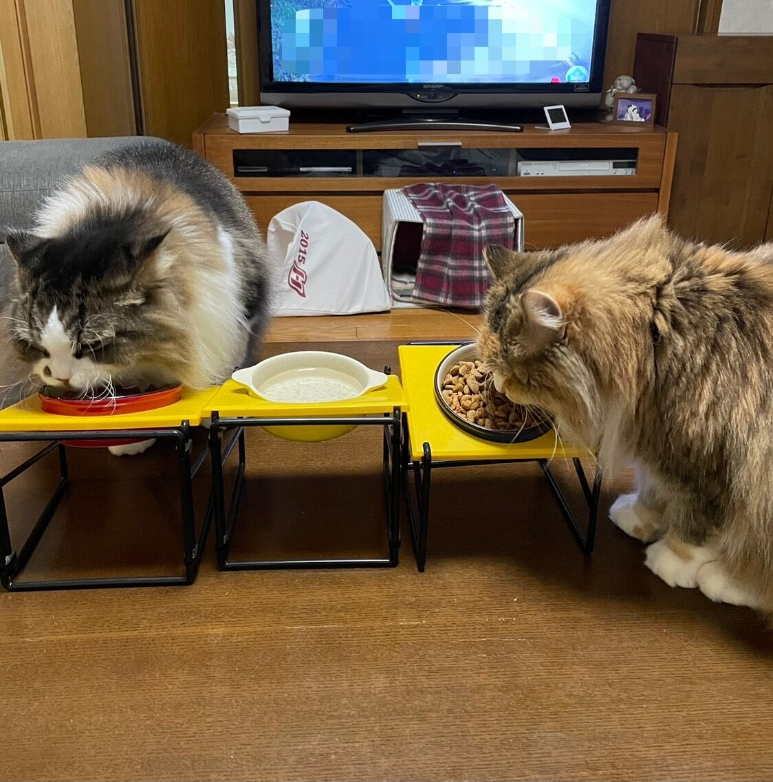 ふたりともこれで爪とぎをするのが大好きで、テントも中に入るというより爪とぎに使っている感じ。
