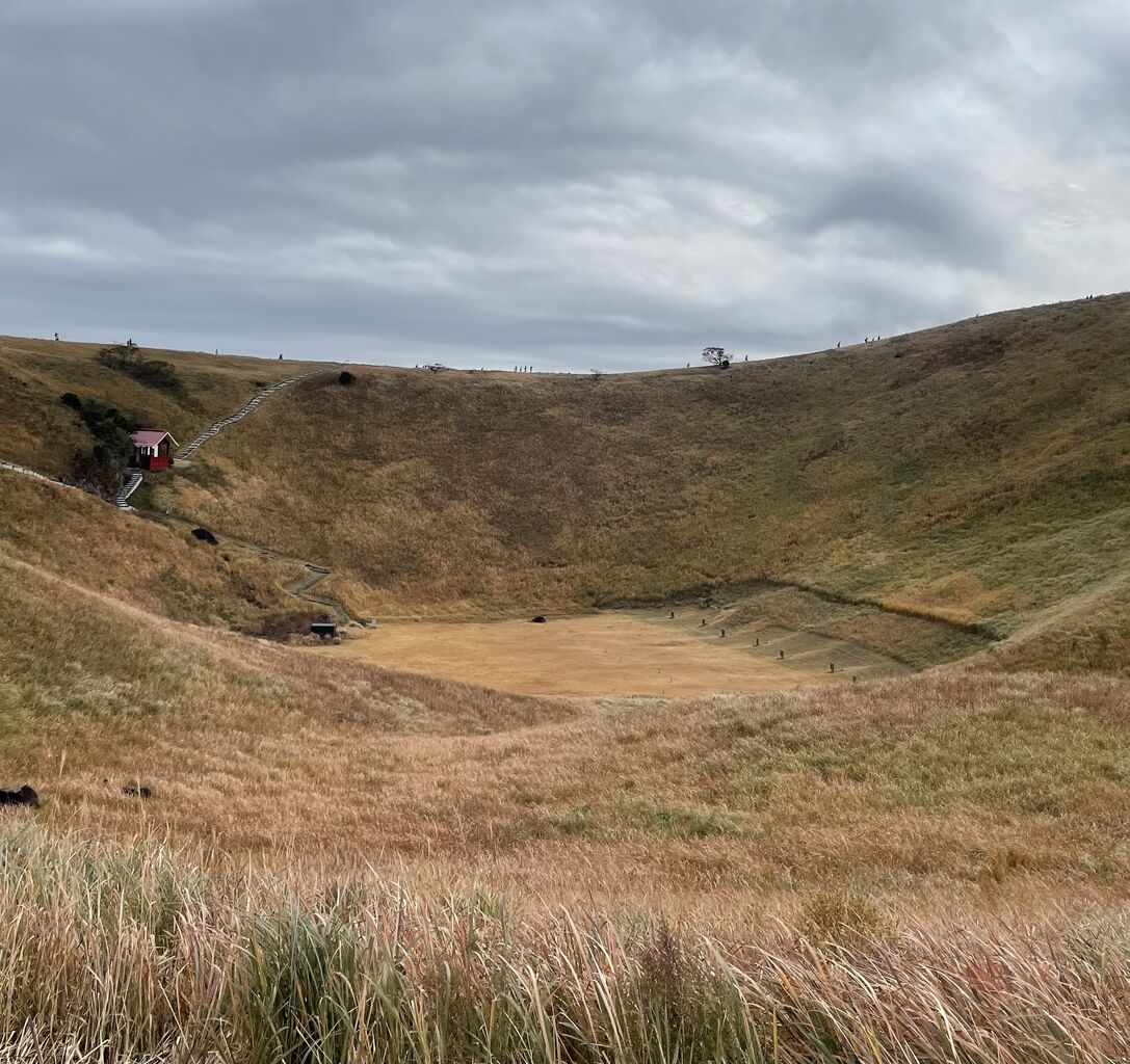 "大室山"と検索すると緑のすごく不思議な山が出てくるんだけど、秋なので少し茶色。そして曇っていたのでこんな写真になりました(涙)
