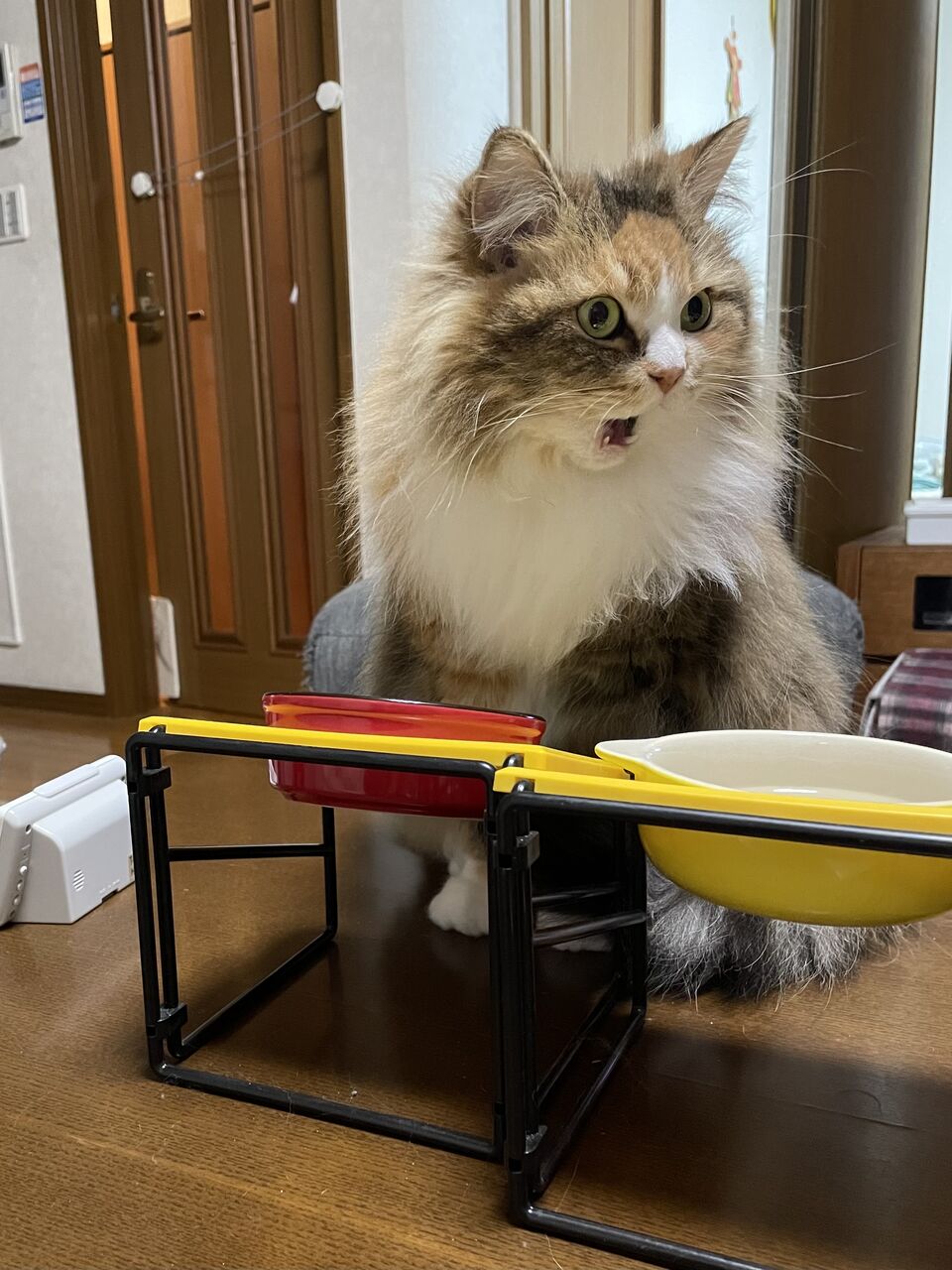 最近、なぎが夜のある時間帯お皿からエサを食べる。