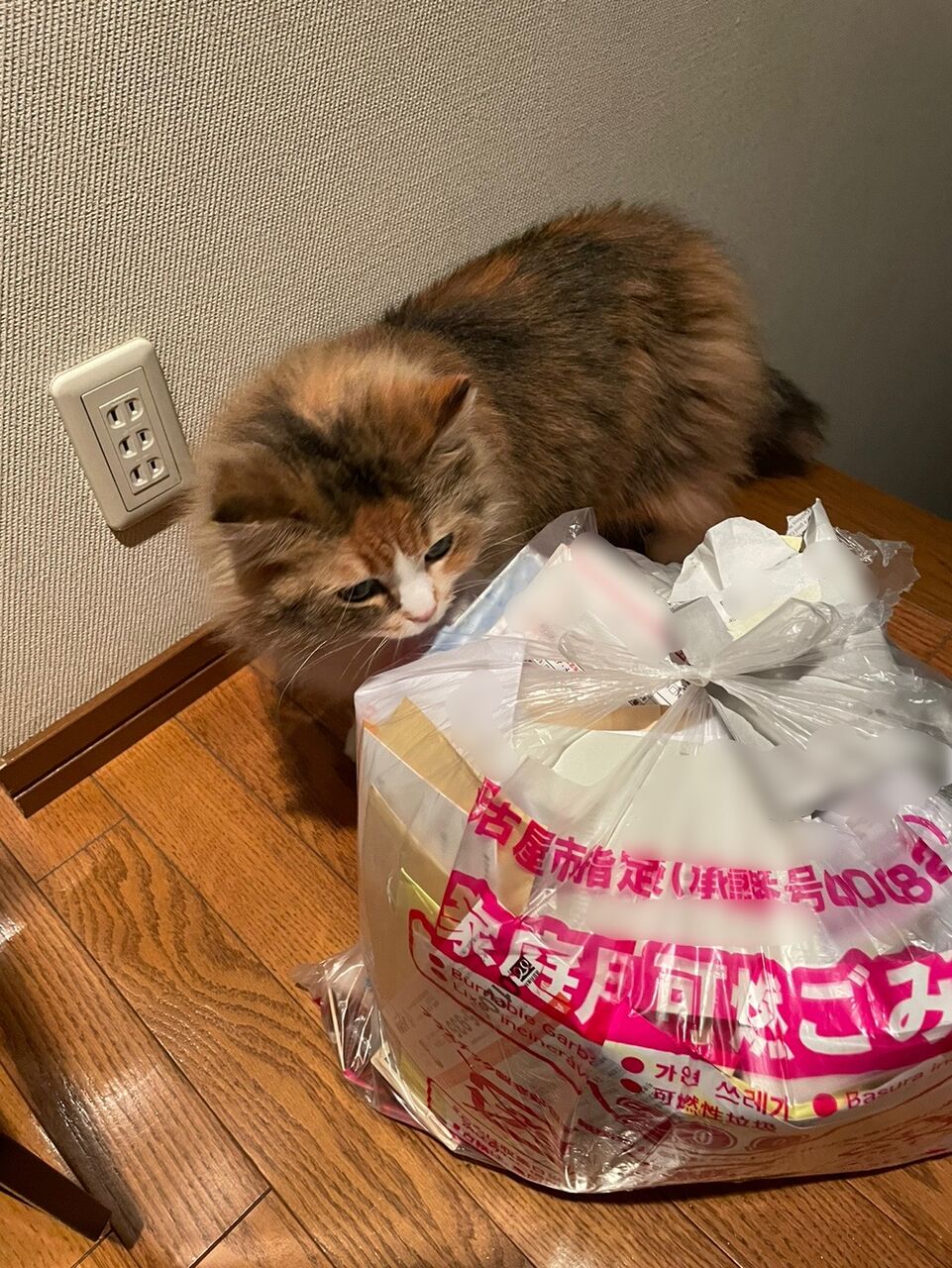 なぎはゴミ袋に顔を突っ込み、テンちゃんはそれをぼーっと眺める。