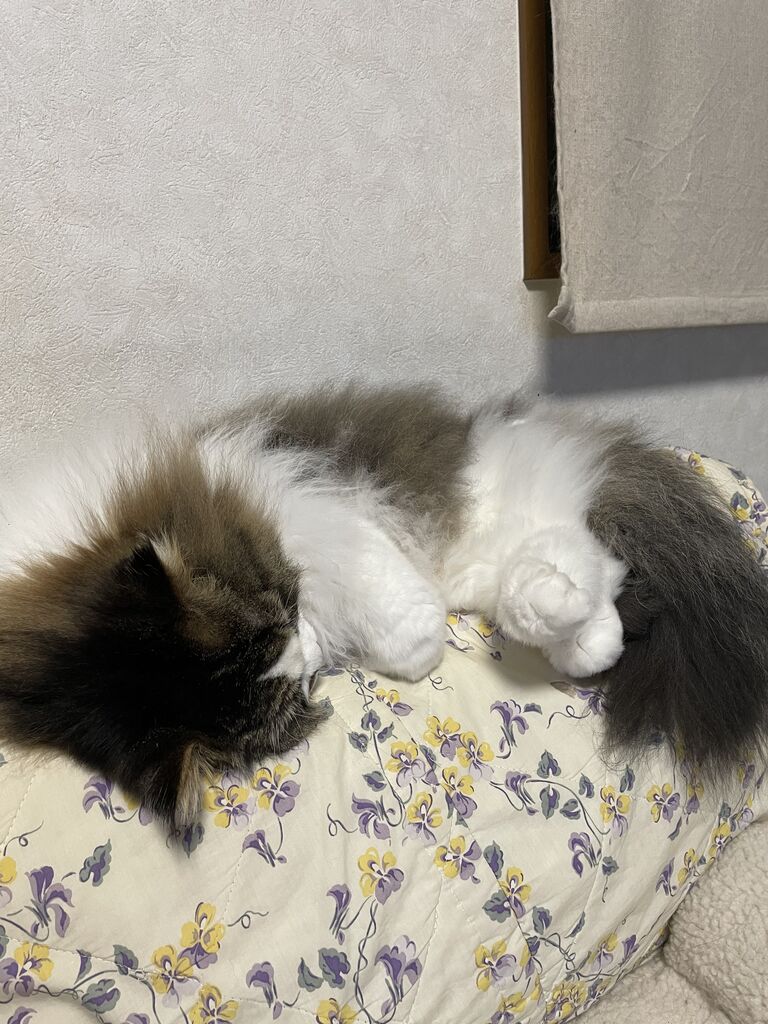 自分の部屋に洗濯物を持って行ったら、なぎが私の布団の上で寝ていた。