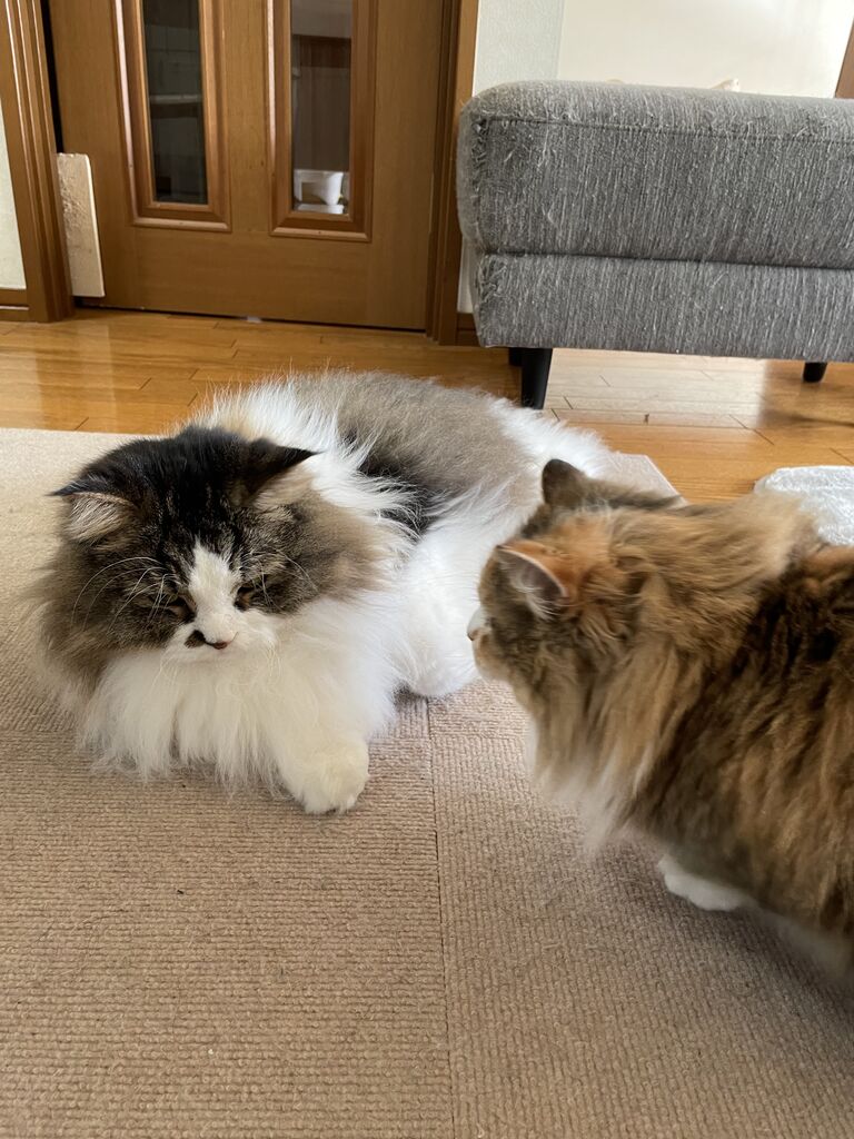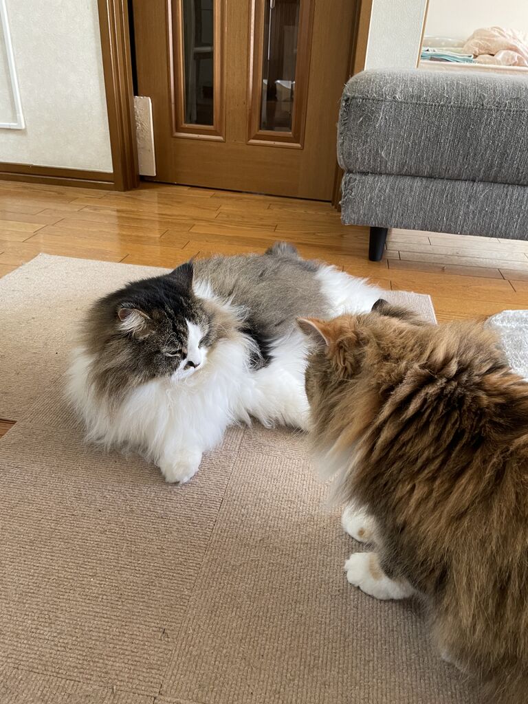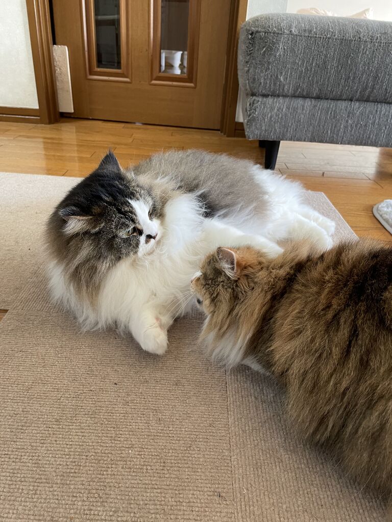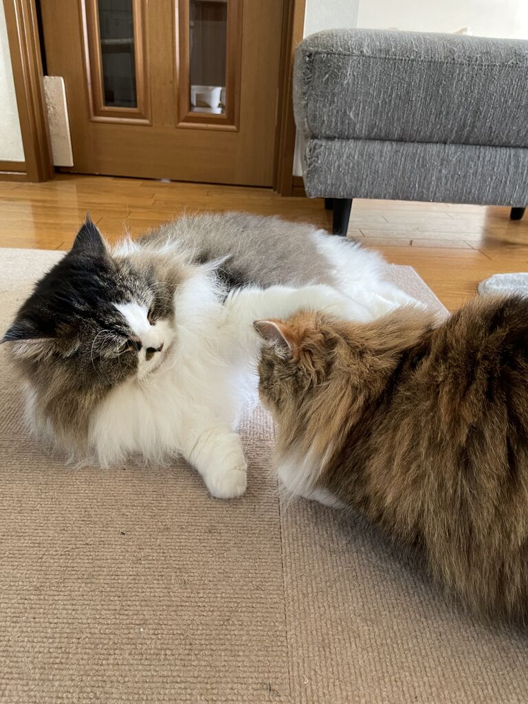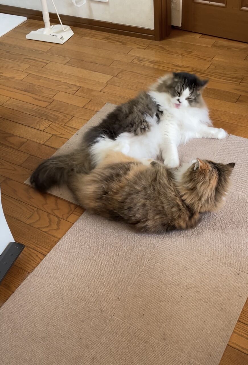 グルーミングするのはなぎからばかり。グルーミングの途中でテンちゃんから叩かれるなぎが可哀想で…