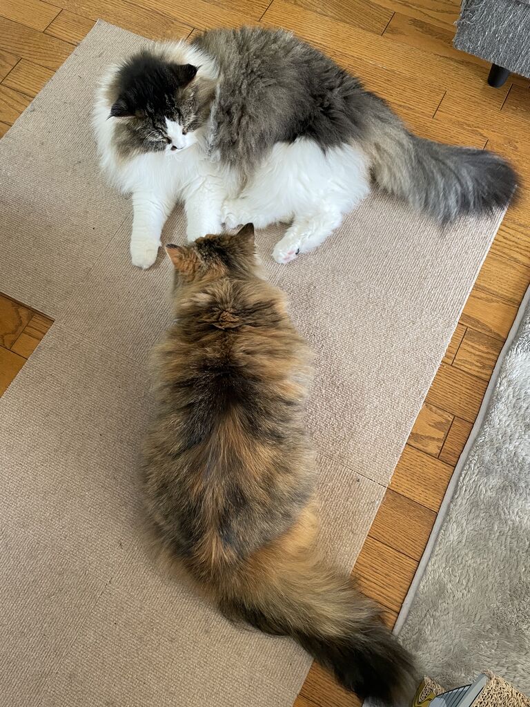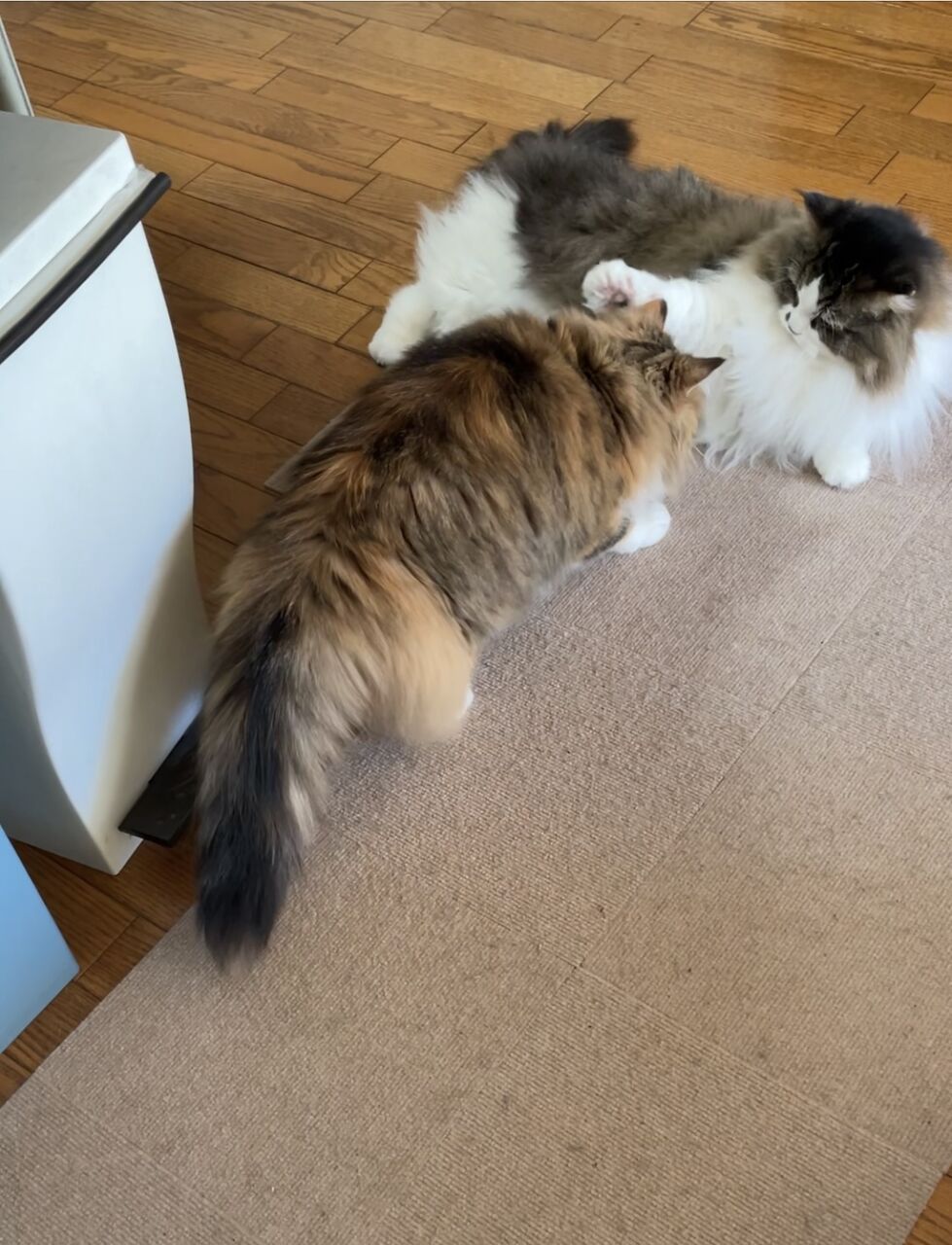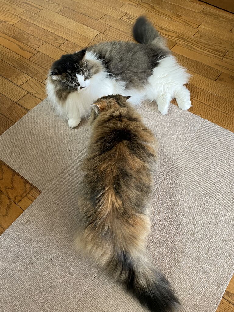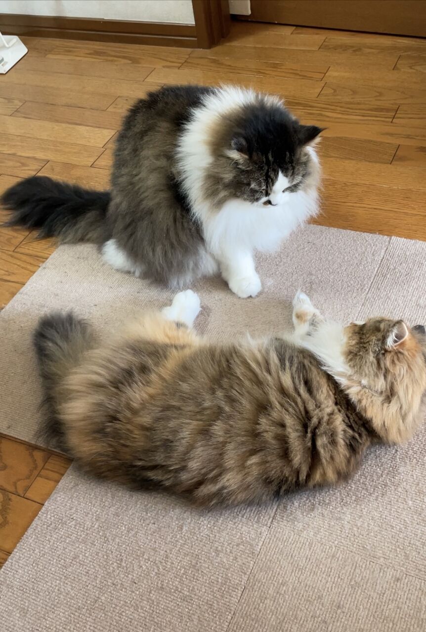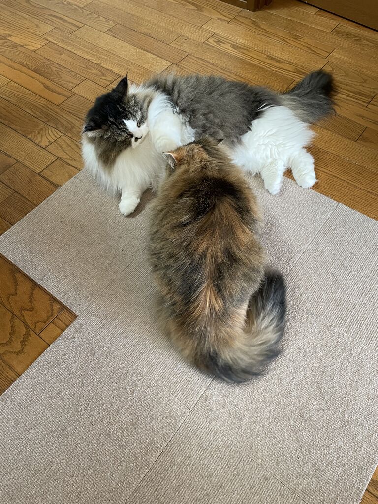 グルーミングするのはなぎからばかり。グルーミングの途中でテンちゃんから叩かれるなぎが可哀想で…