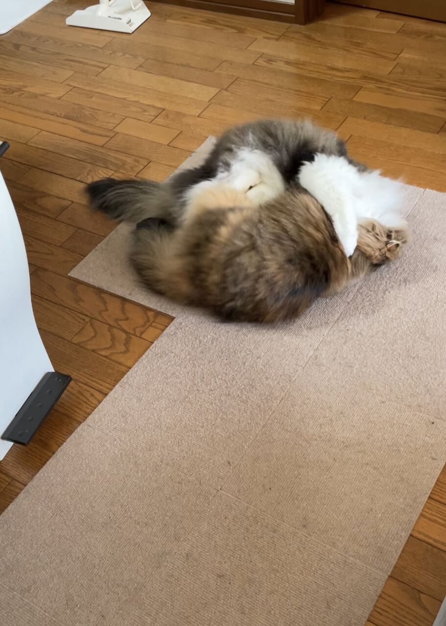 ガリガリ掻き過ぎて猫砂が飛び散る。新しい猫砂は手触りも大きさも前のに近くていいけれど、飛び散りが多い感じ(汗)まあそこは飼い主が片付ければいいことだけどね。