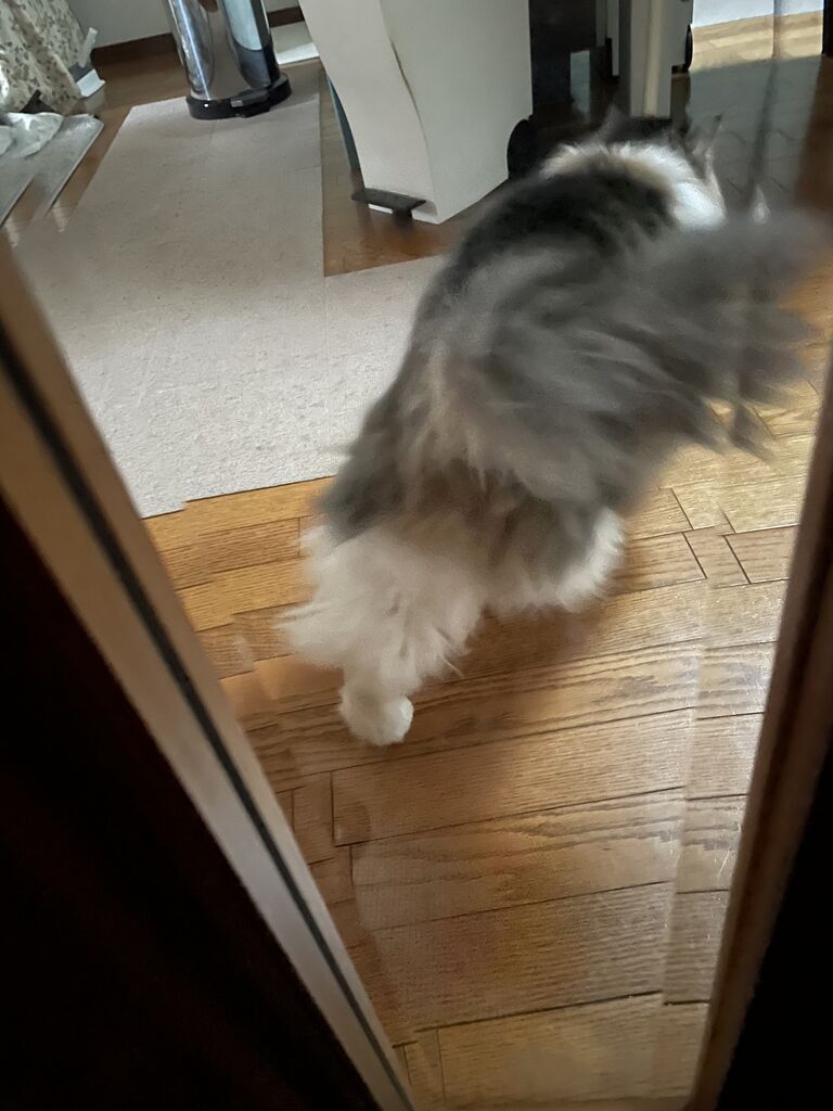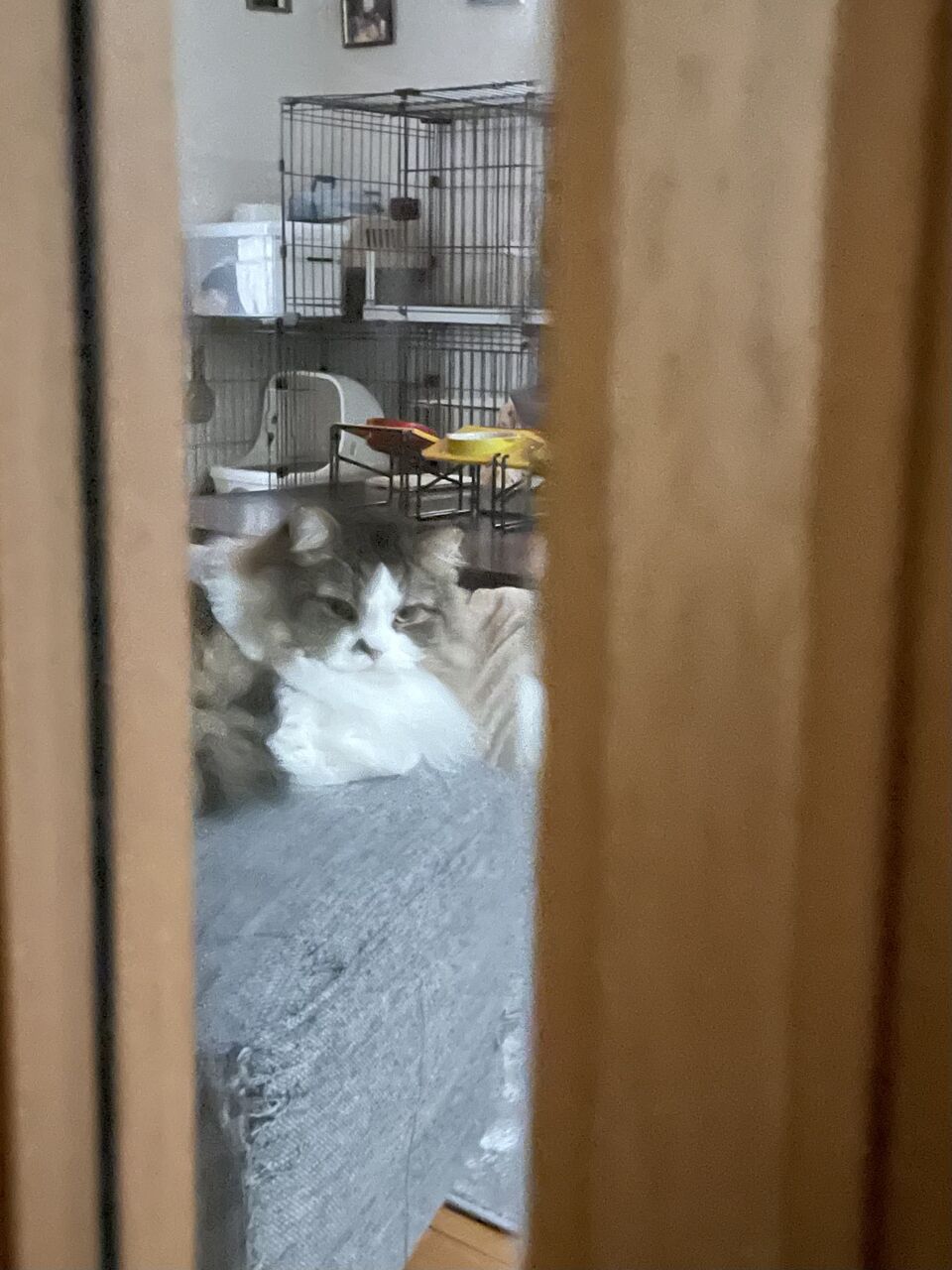 部屋を出て居間の前を通るとき、ドア越しにテンちゃんが見える。