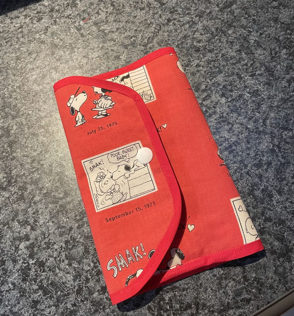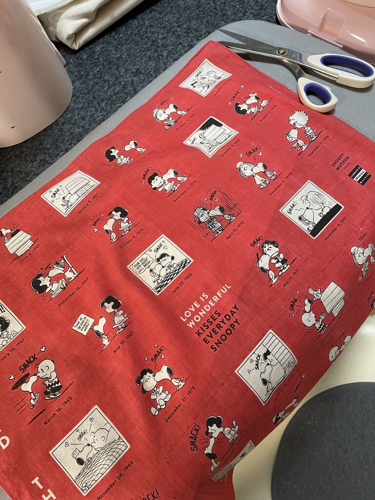大きくて使いづらかったスヌーピーのハンカチを使います