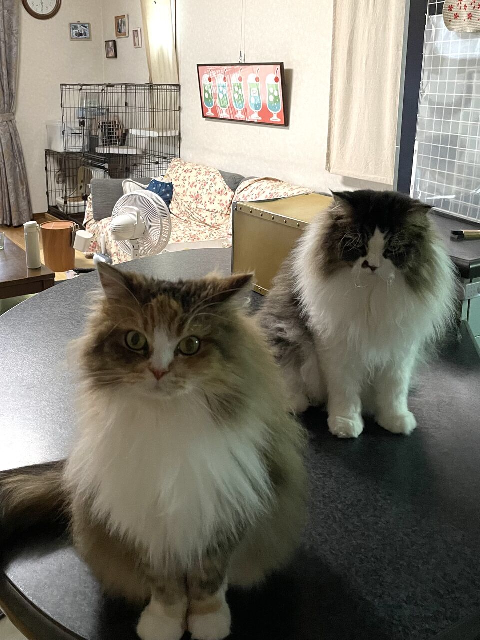 暑いから居間に来ました
