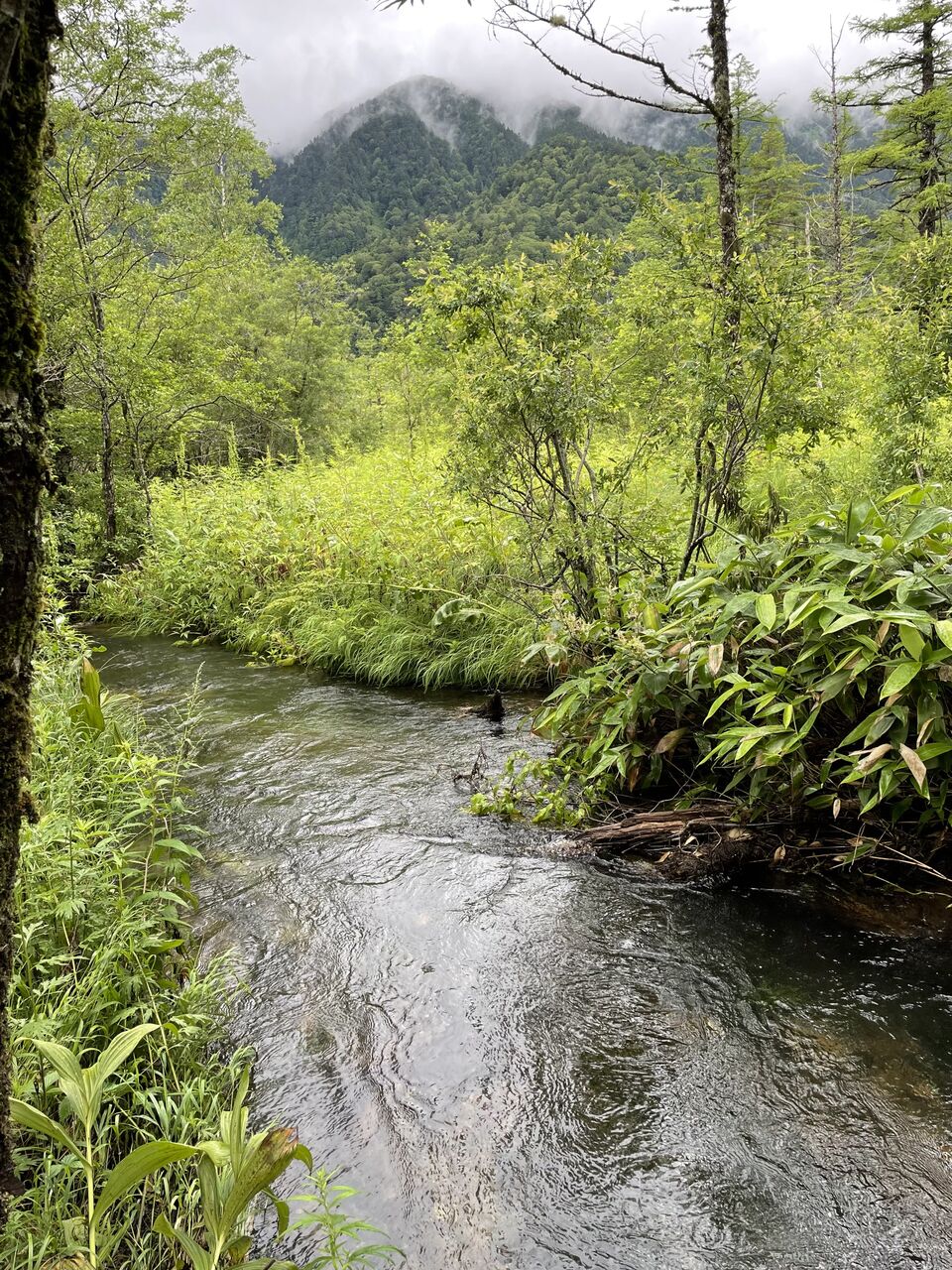 梓川沿いコースは道の冠水のため通行止め。林道コースを歩く。何度か上高地に来ているけれど、林道コースは初めてかも?