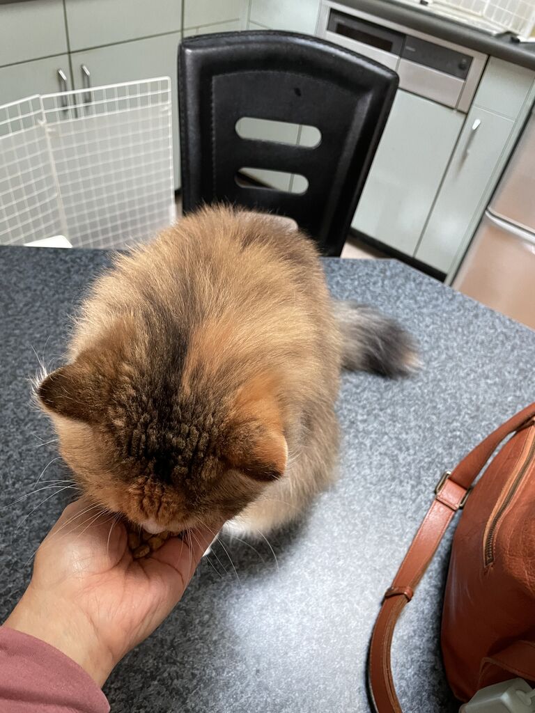 今日は少し時間に余裕があるから、食べさせましょう。なでましょう。