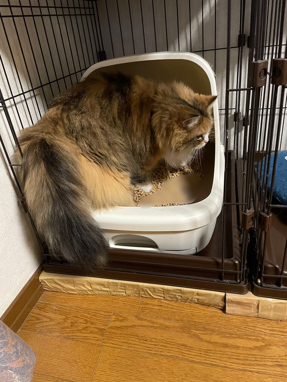 「砂をかくときその動きでお尻についたうんちが落ちるはずなのに、かかないからトイレから出る勢いで外に落ちるのでは?」と考察する飼い主たち。