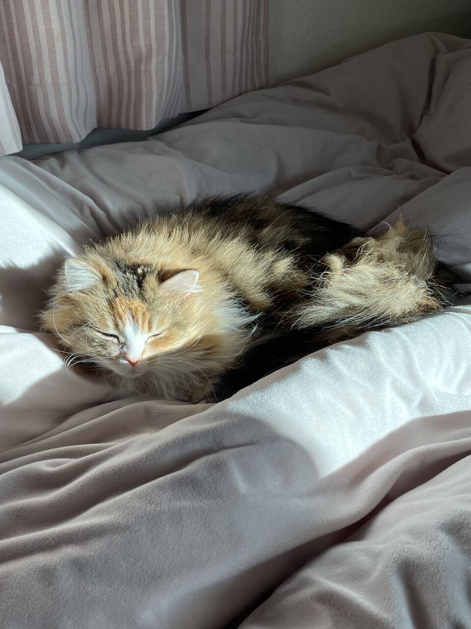 いつものように私のベッドでお昼寝中のなぎ。「ただいま」しても目が開けられない。