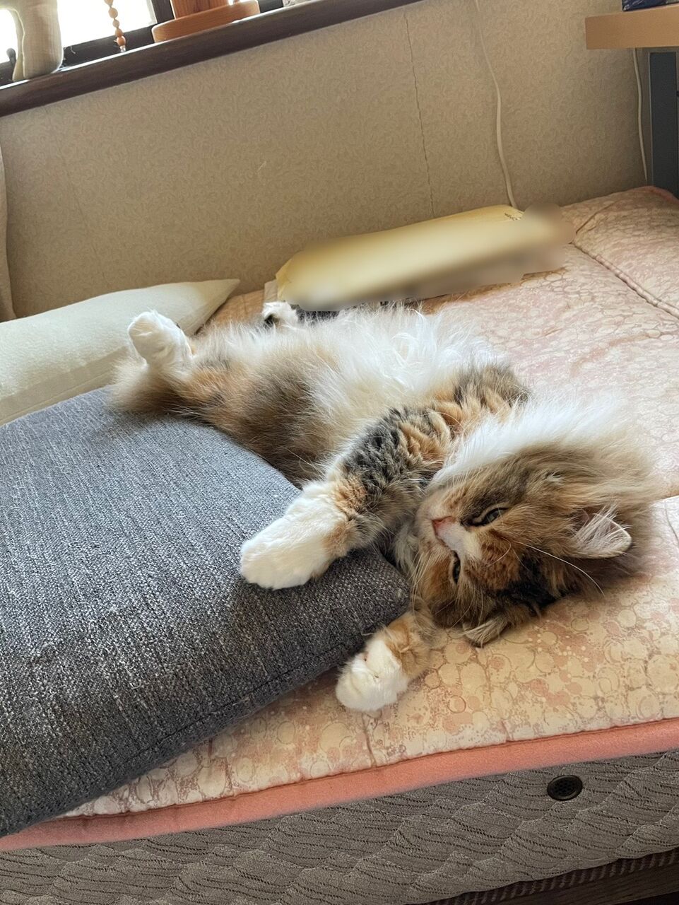 最近のお昼寝場所は寝室のベッド。