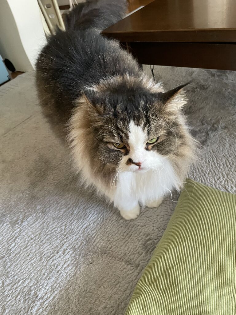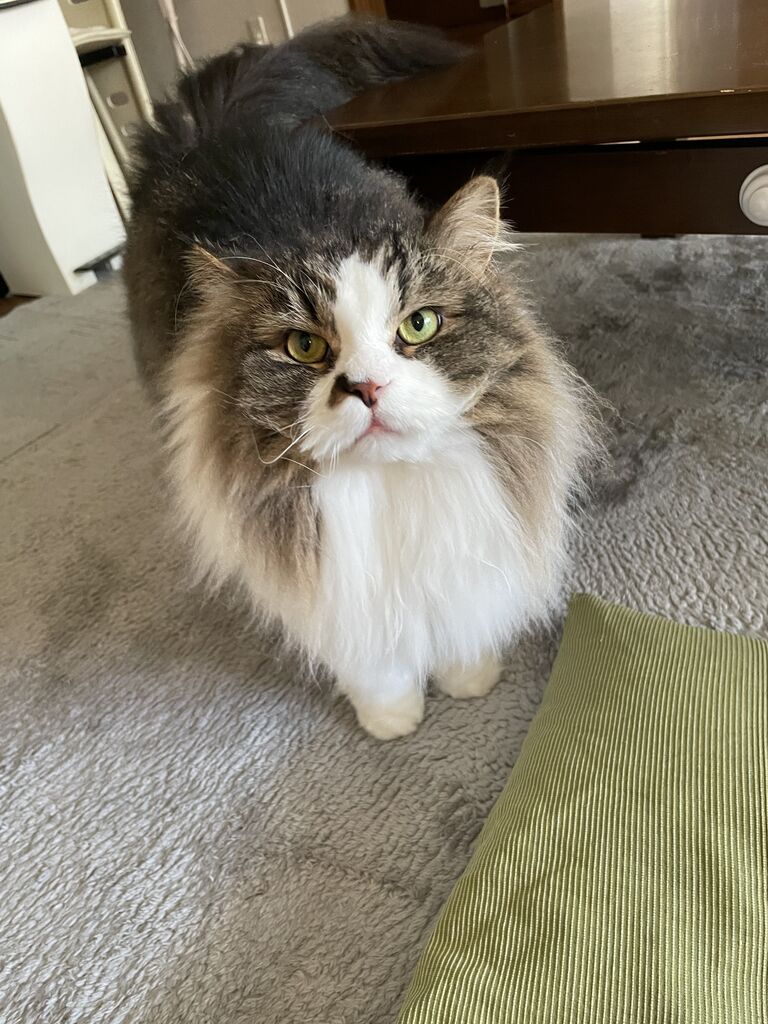 ぼくはその"くしゃくしゃ"っていう顔はできないから、ぼくができる1番可愛い顔で飼い主さんのところへ行くよ。