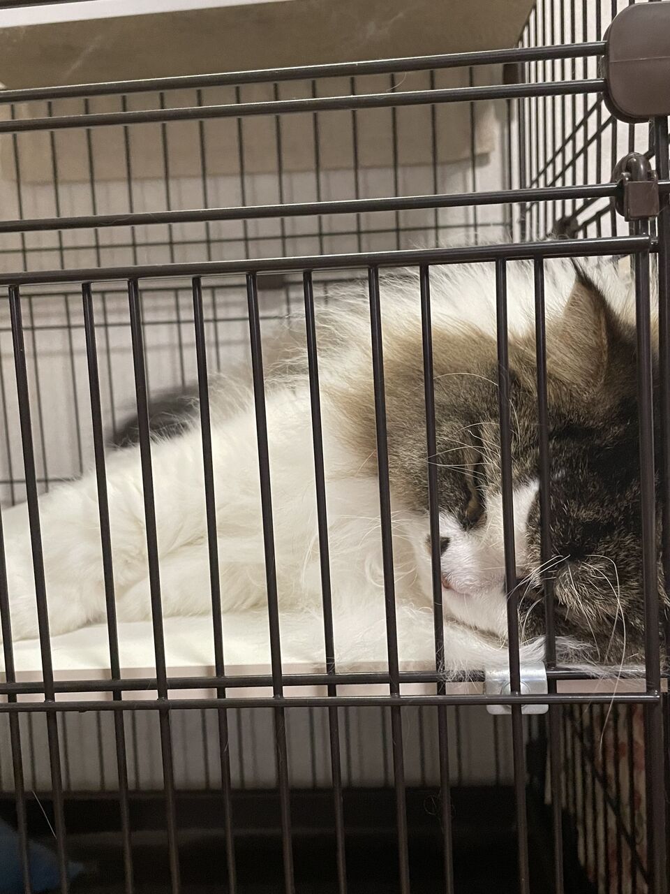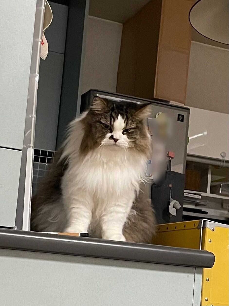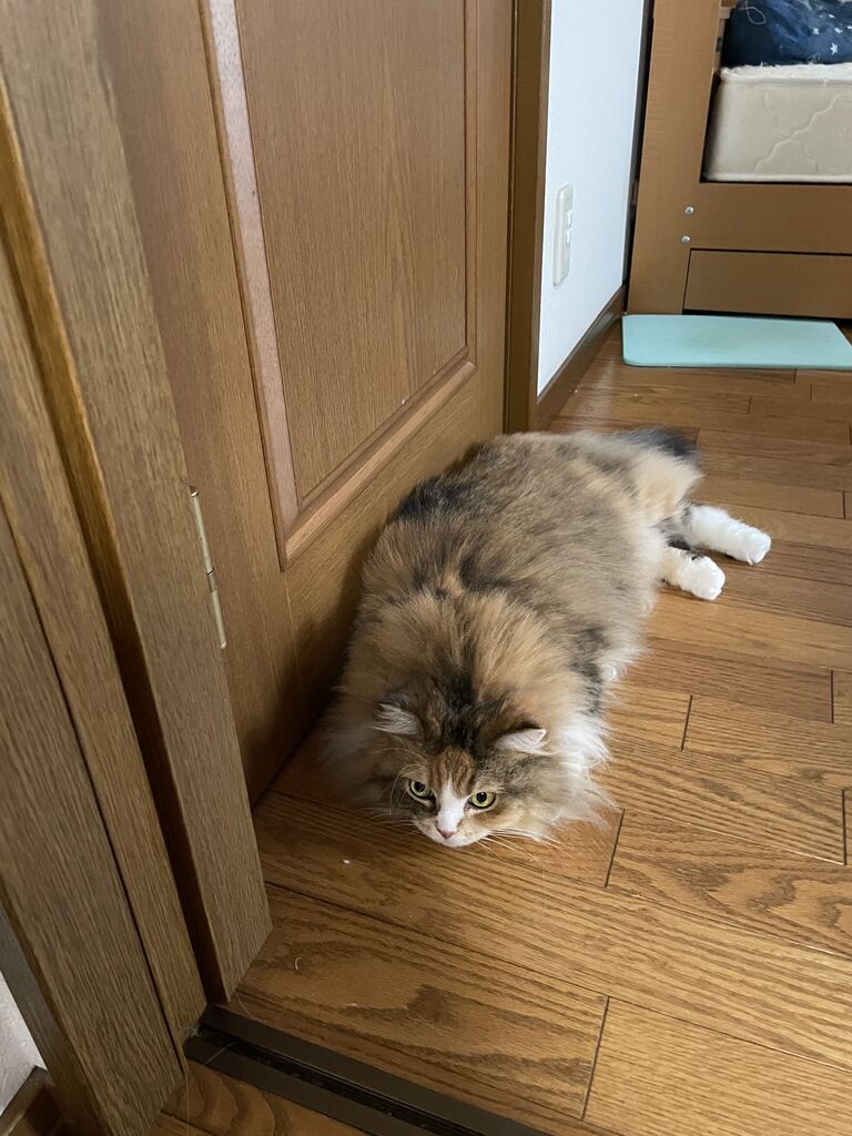 そのドアの前に陣取るなぎ。鉄壁の守り、態度はダラけてますが(笑)