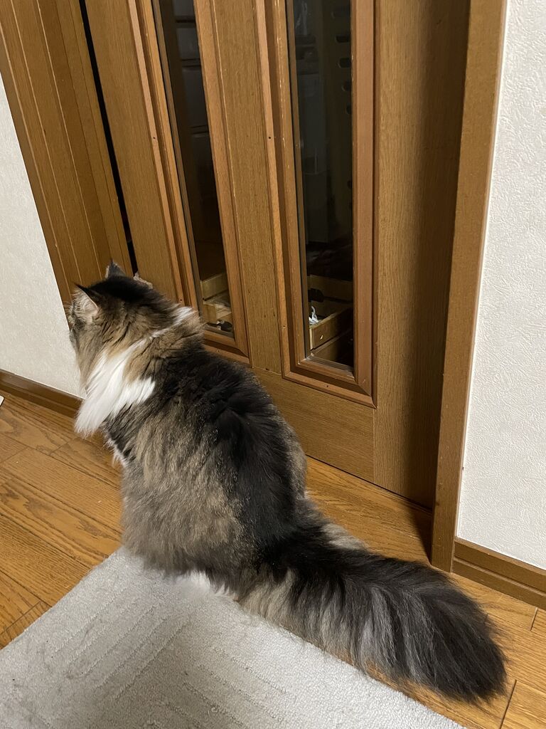テンちゃんは開かないドアの前で待ってる?