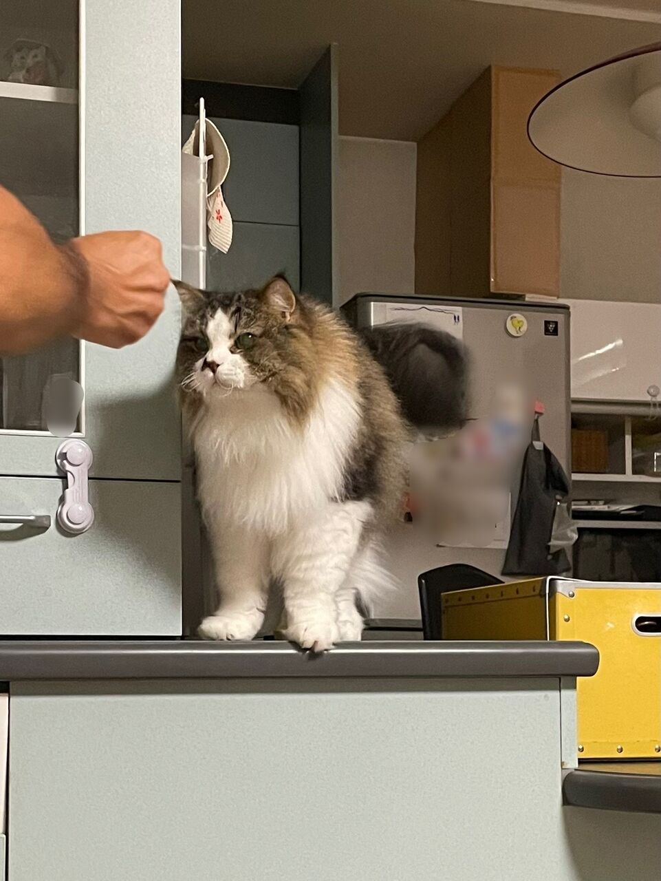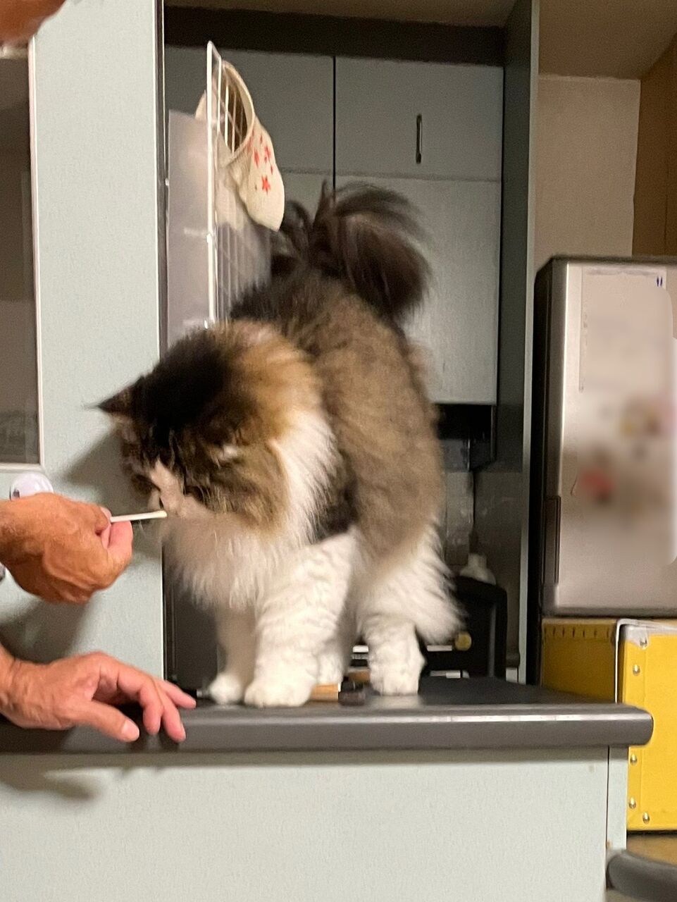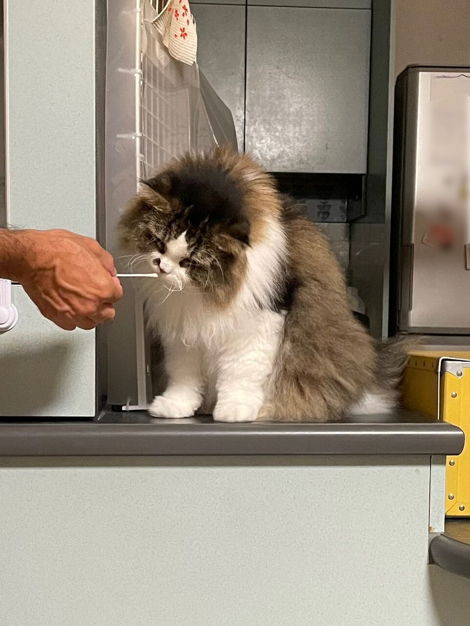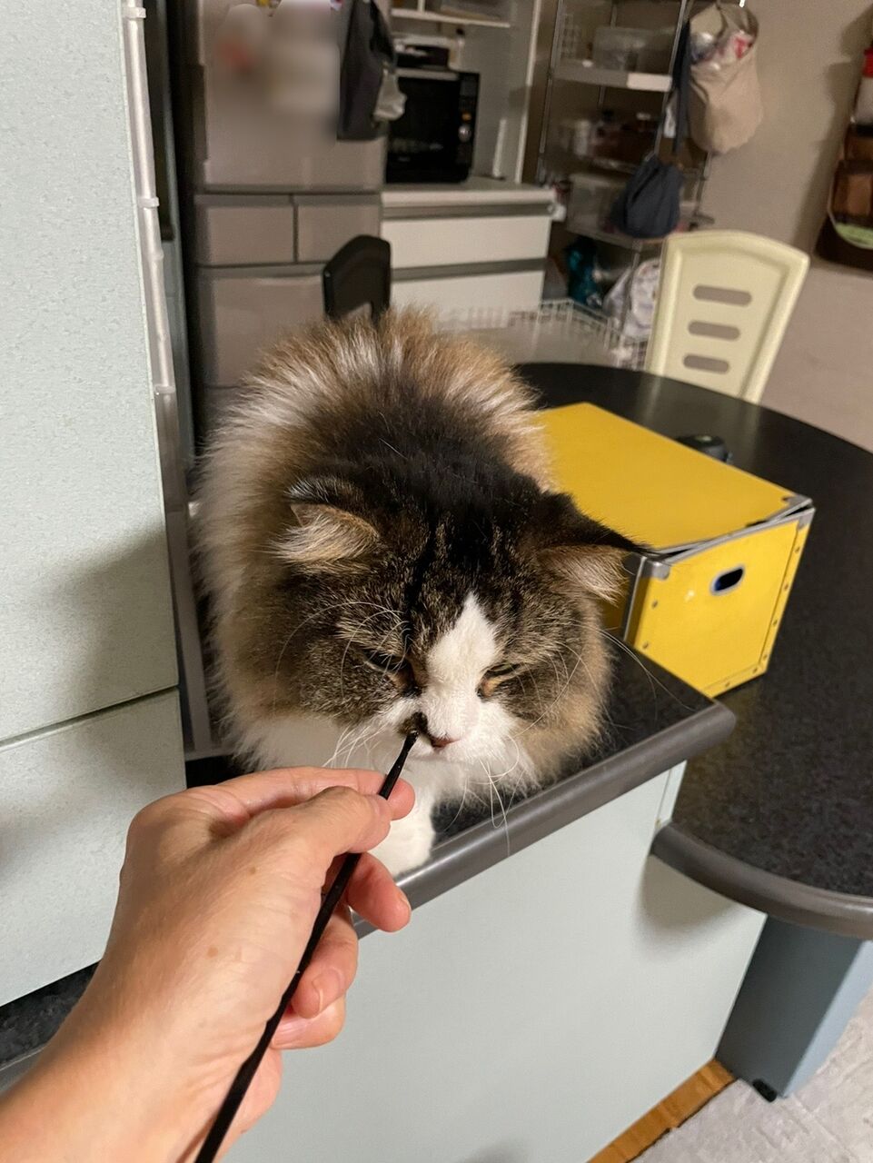 昼間家にいるときは、なぎはまだまだ手から食べることが多いので療法食を飼い主が管理。