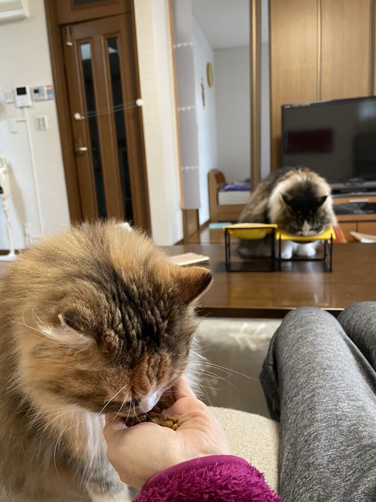別々にしたから?冬だから?なぎの場合療法食にしたから?また食べなくなるときがくるのかしら?