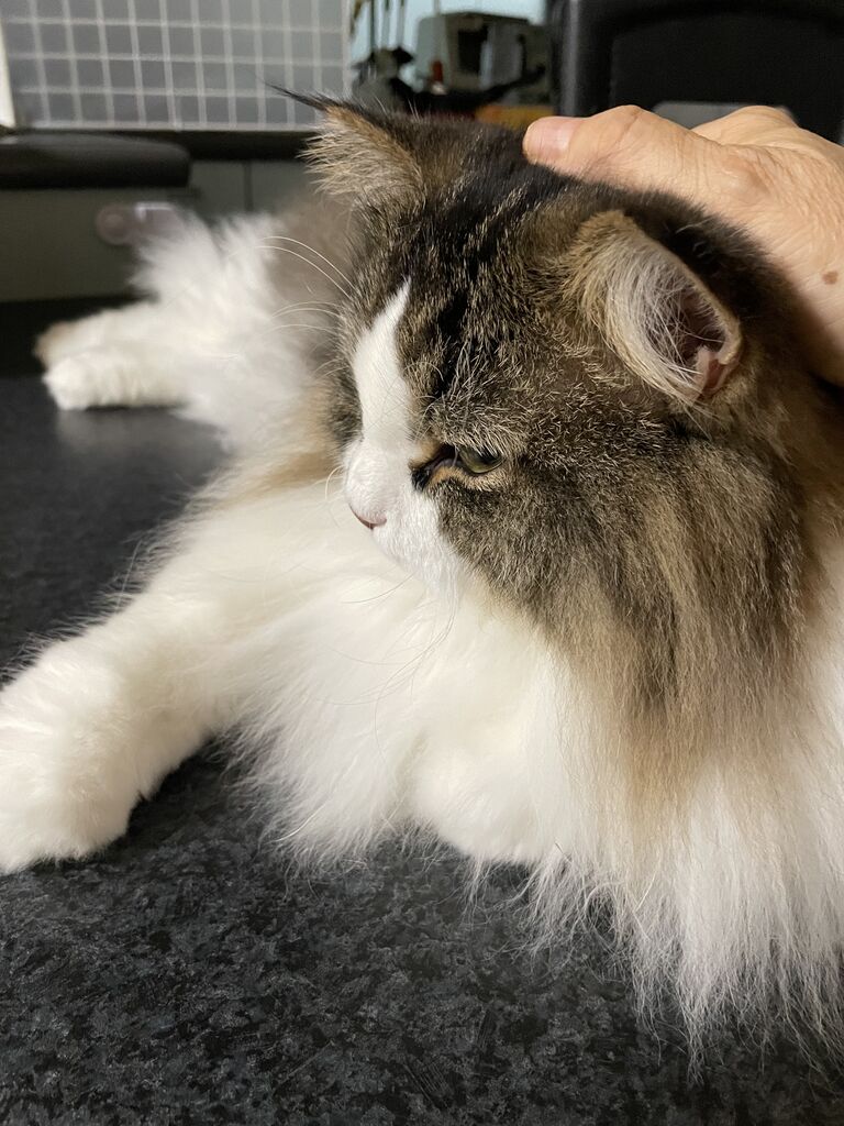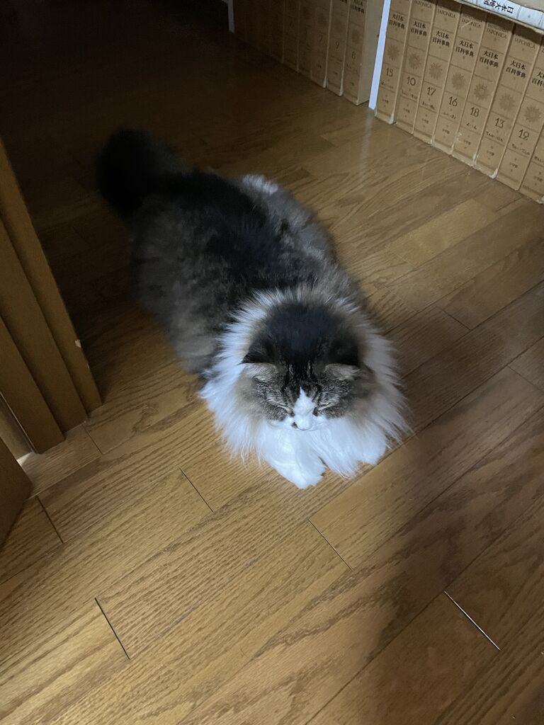 ドアを開けると「アー」と鳴いてゴロゴロおなかを見せる。キョトンとした顔で私を見つめる。