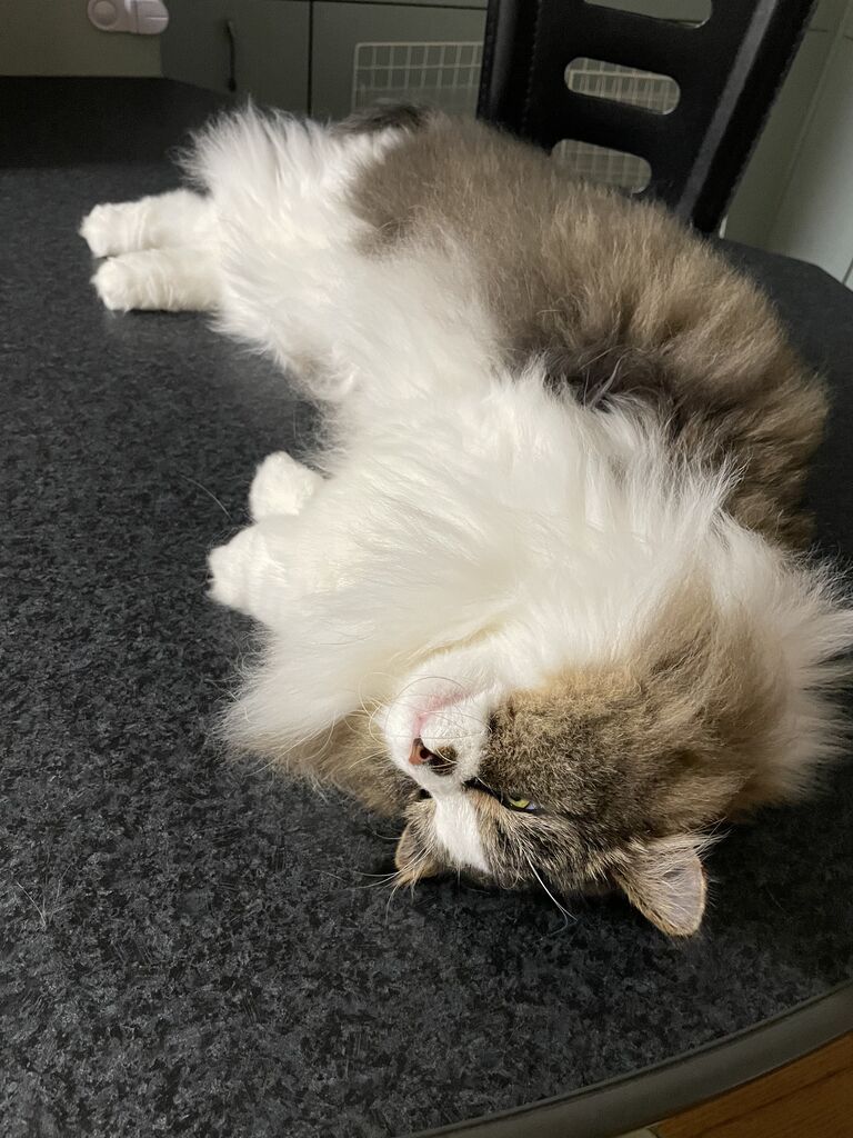 私が居間に行くとテンちゃんは、安心したようにテーブルの上でお昼寝を始めた。
