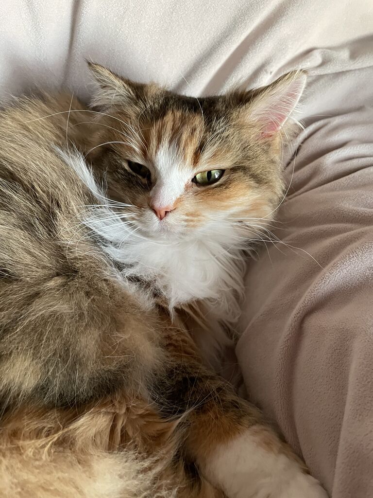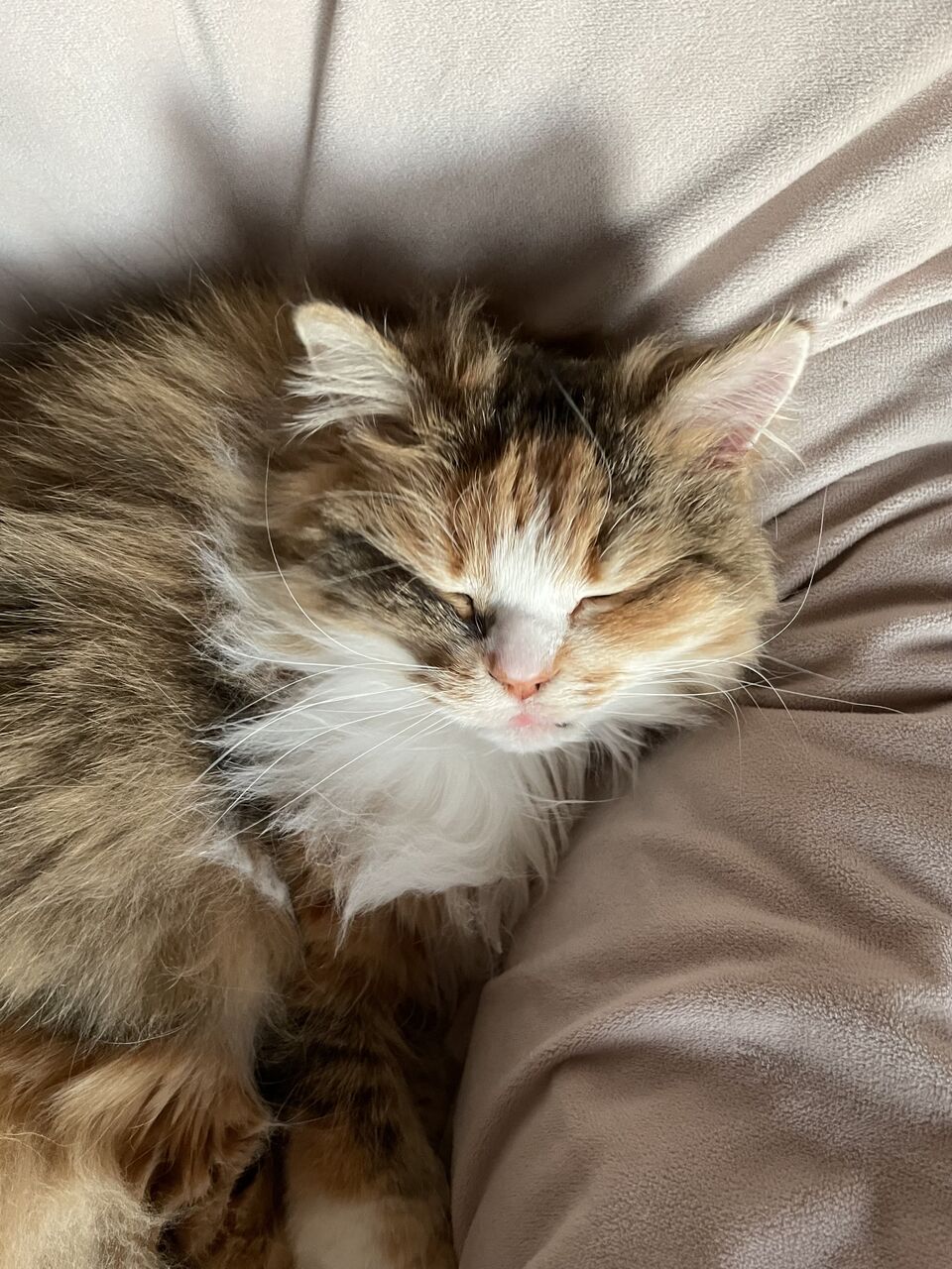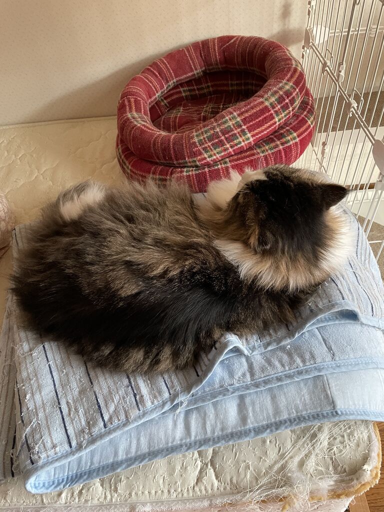 寝てばかりいてカリカリを食べる量が減っている(汗)