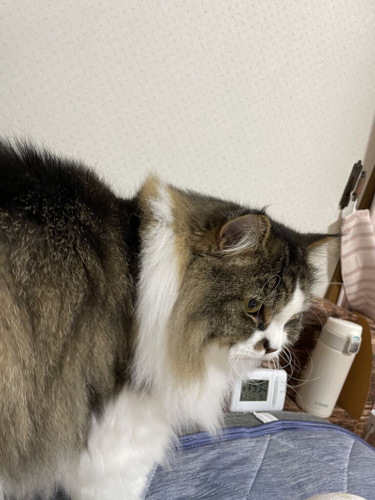 私が体の向きを変えようとモゴモゴ動くと、テンちゃんはベッドに乗っかってきて「アーアー」と鳴く。
