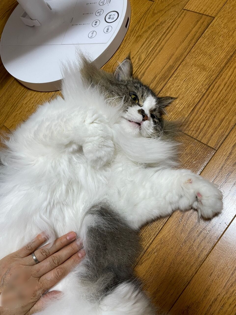 そのあともテンちゃんはずっと私の部屋の床にヒラメのように座っている。たぶん寝ているんだろうね。