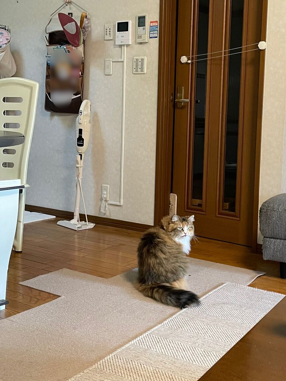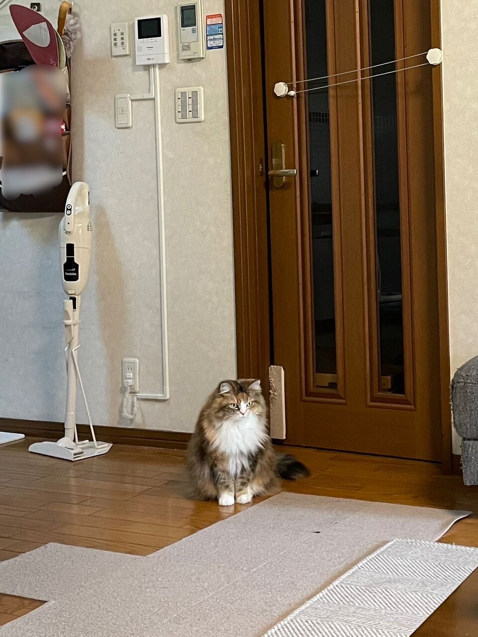 「ミャッ」また鳴く。出してほしいのね。わかるよ、わかる。朝、寝室へ行くのがなぎのルーティン。でもさ、空気を読んでほしい。飼い主は動けないのよ。