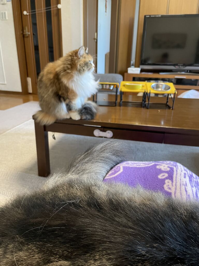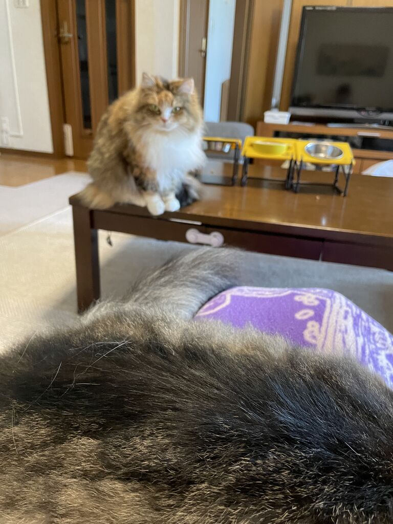 「ごめん、なぎ。動けないのよ」飼い主は全然謝る気なんかないのに「ごめん」と言う。